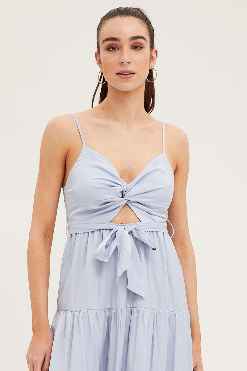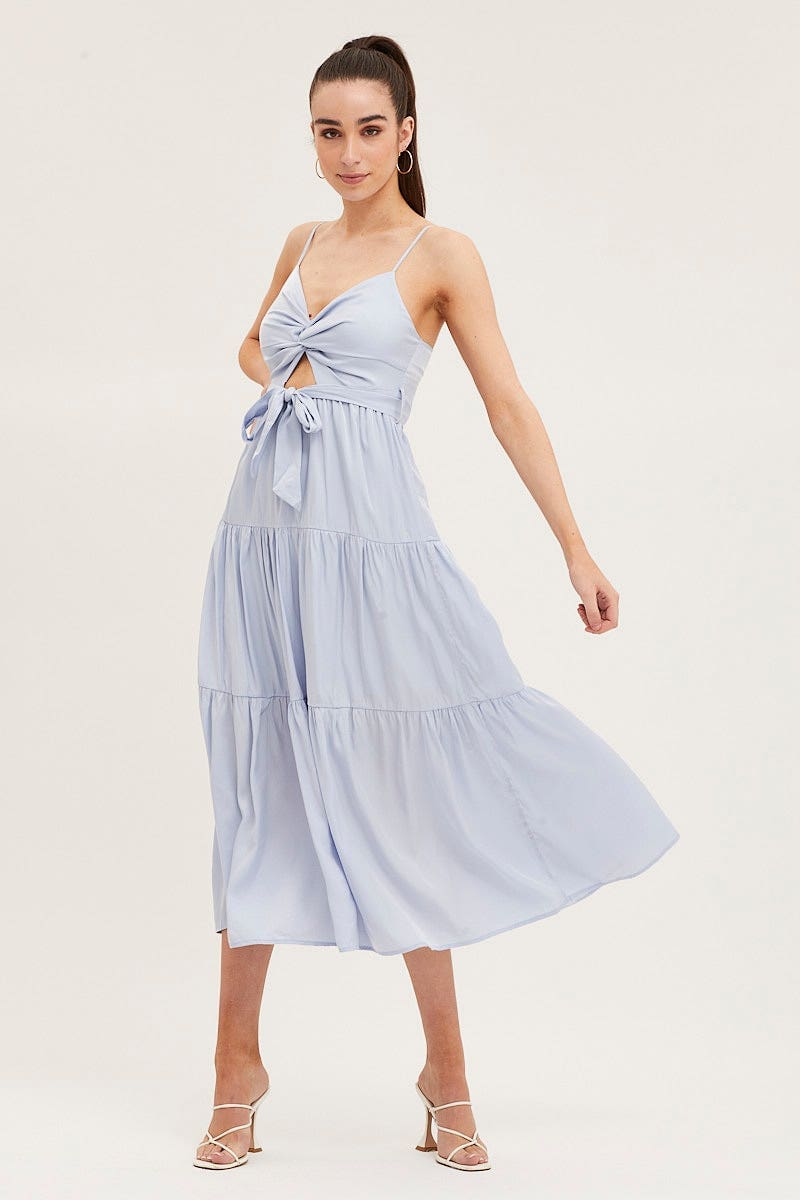 Blue Midi Dress Evening Satin