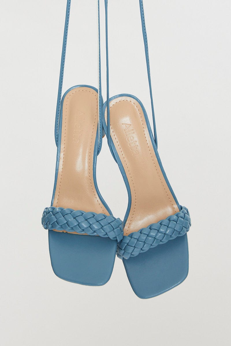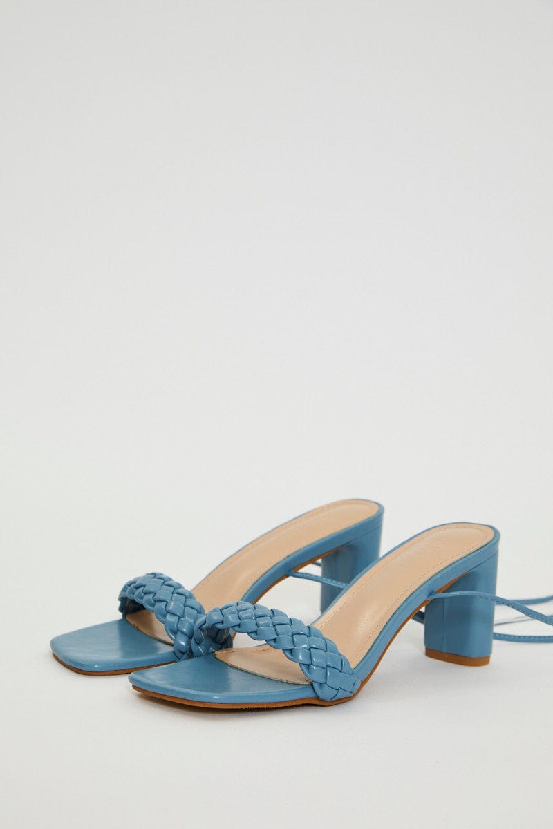 - Strappy, Braided Design, Block Heel, Dusty Blue
