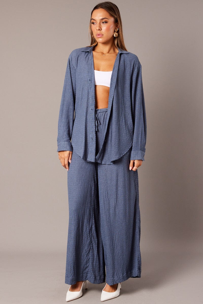 Blue Textured Shirt Long Sleeve