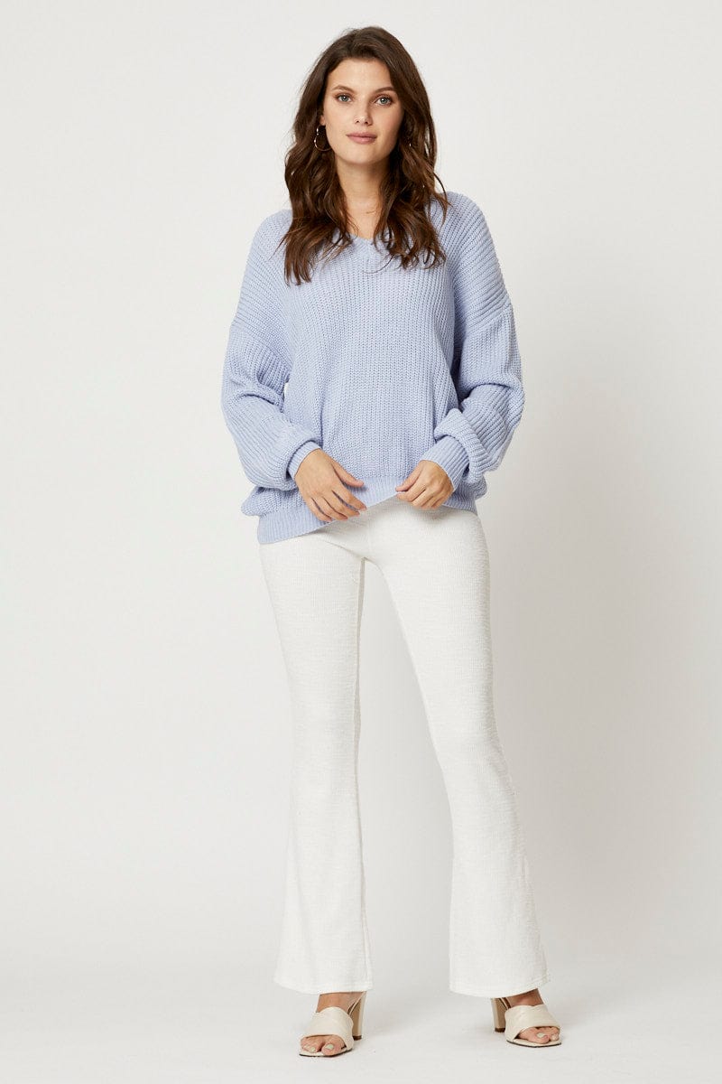 - V Neckline, Tie Detail, Relaxed Fit, Ribbed Cuffs