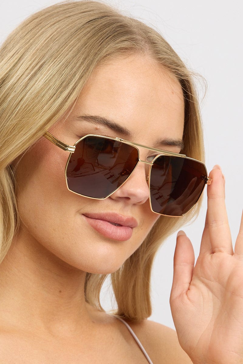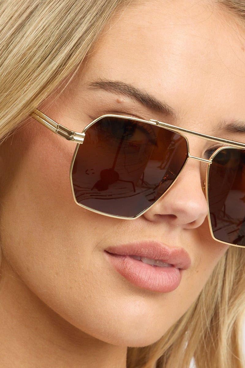 - Aviator-Shaped, Gold-Toned, Brown Tinted Lens