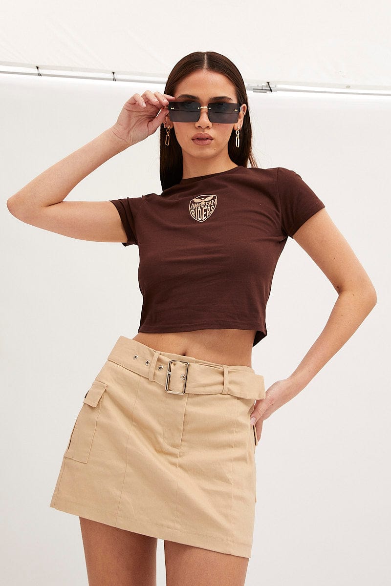 Brown Baby Tee Crew Short Sleeve Graphic Crop