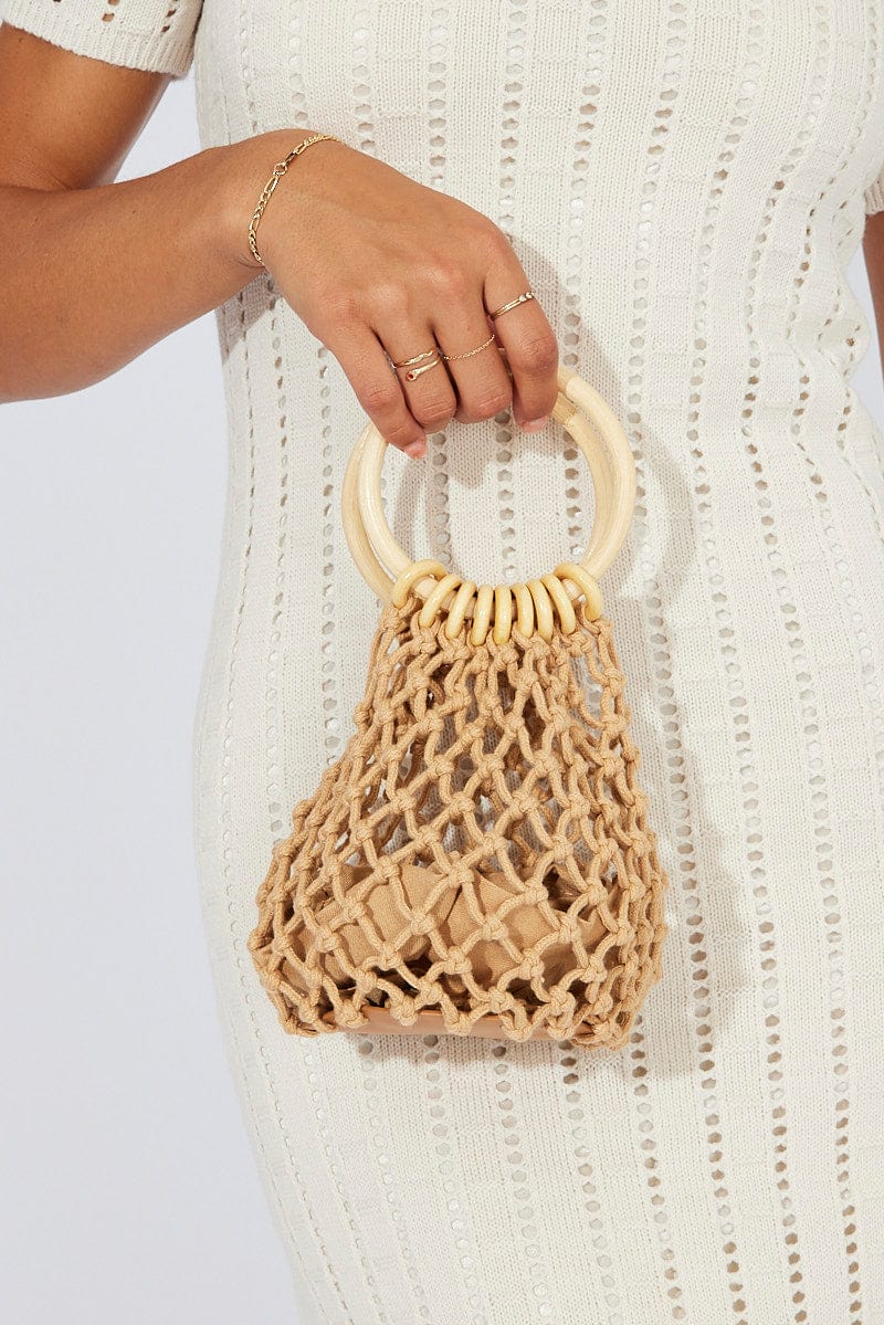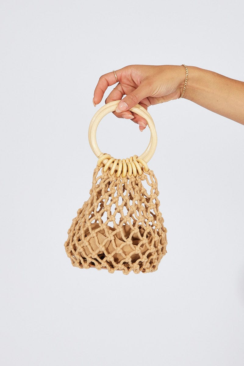 Brown Crochet Round Handled Bag