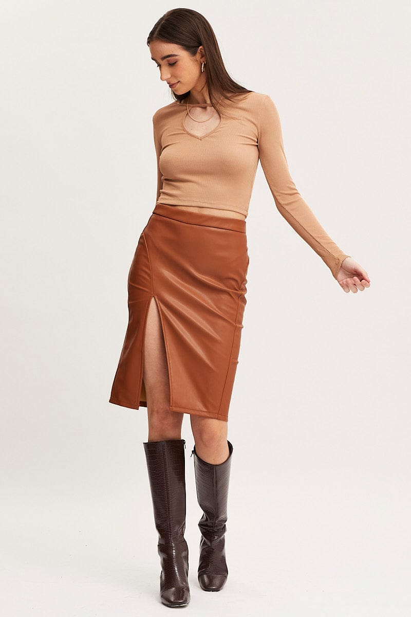 Brown Crop Top Long Sleeve