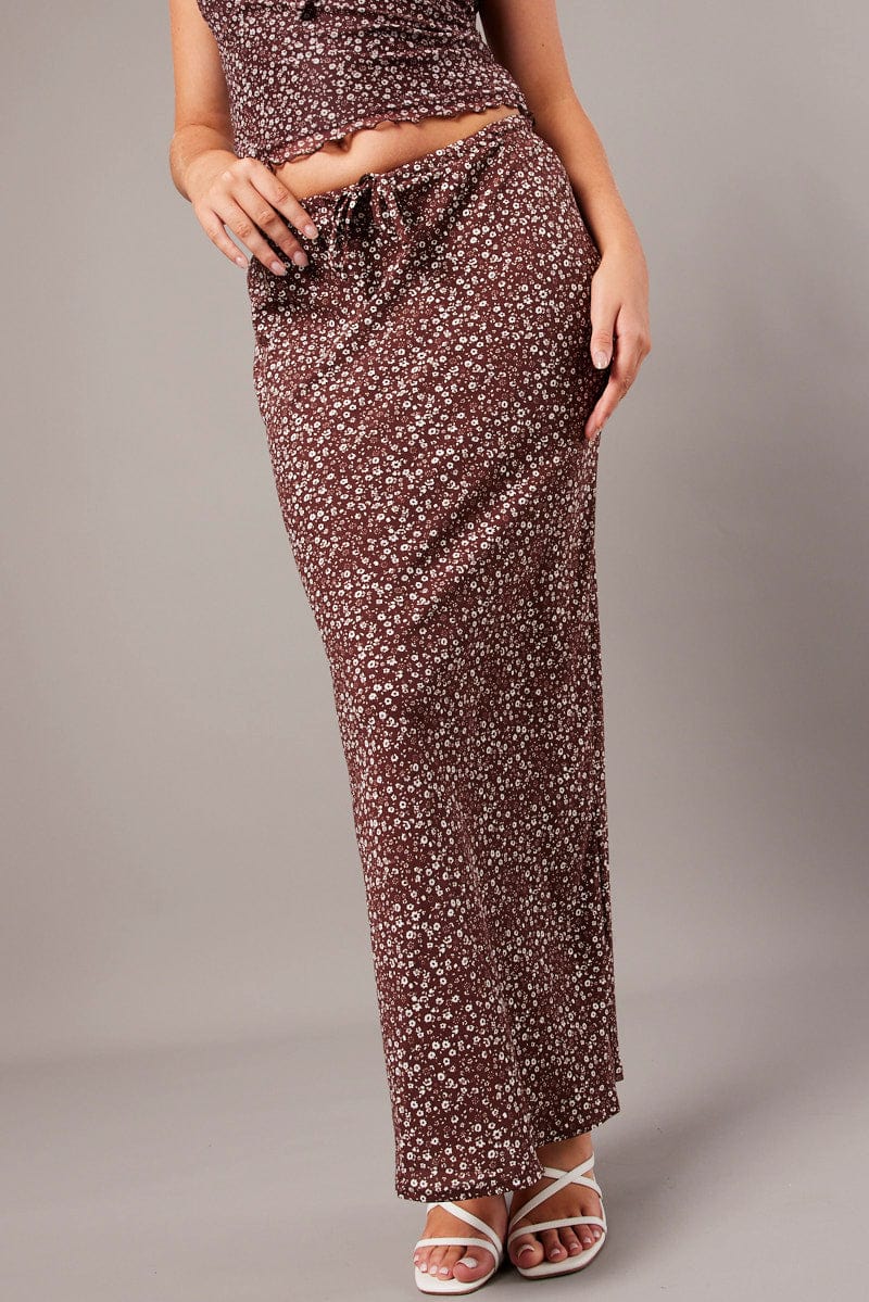 Brown Ditsy Slip Skirt Maxi