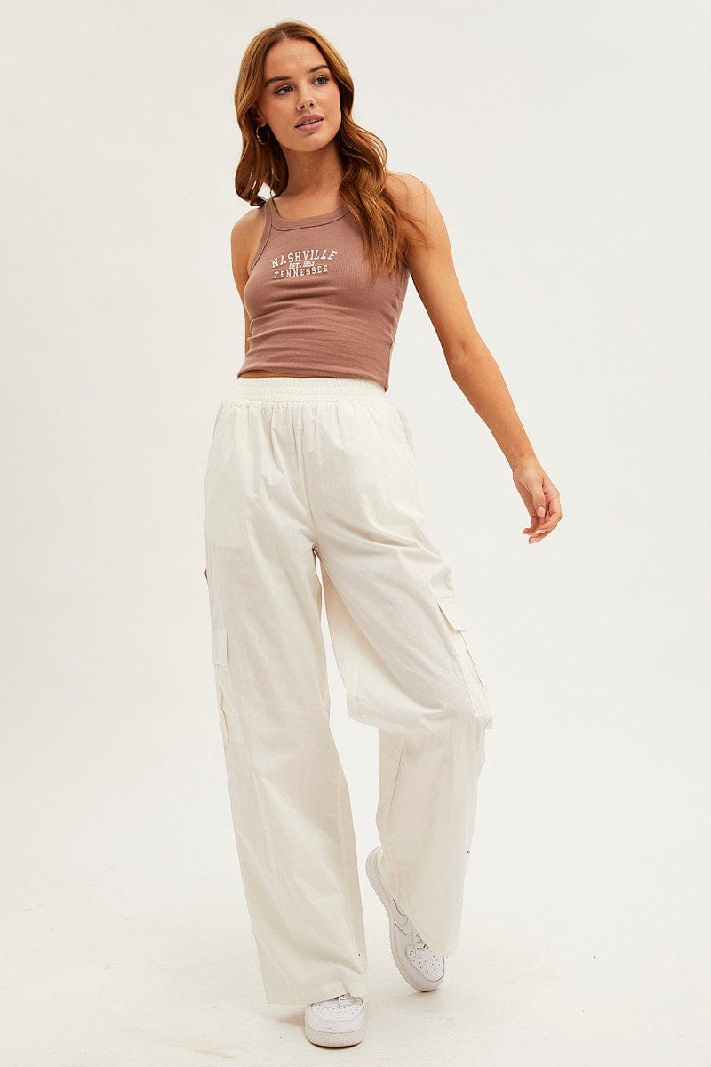 Brown Nashville Embroidered Crop Singlet Top