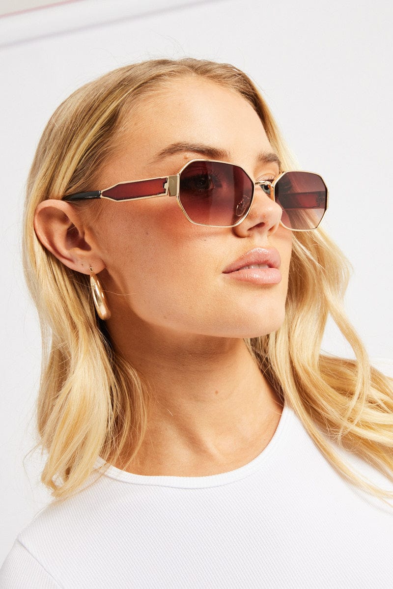 - Geometric Shaped Frames, Gold-Toned, Brown Tinted Lens