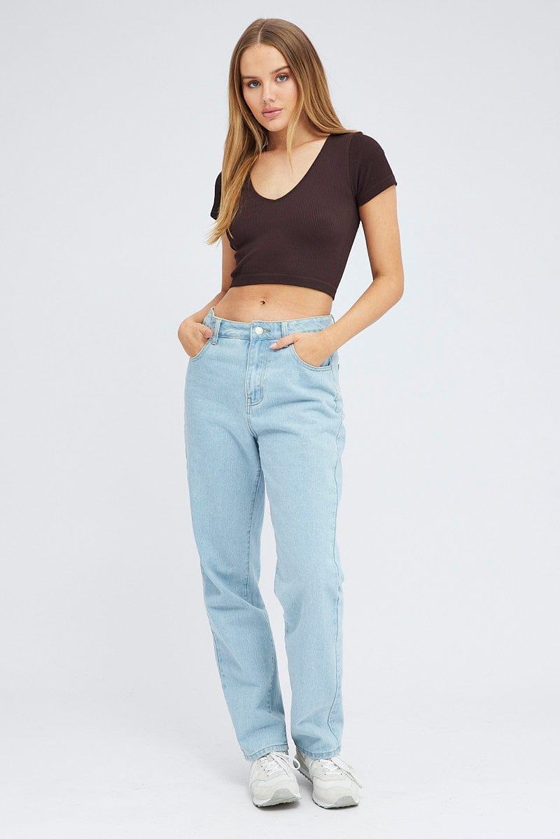 Brown T-Shirt Short Sleeve V Neck Seamless