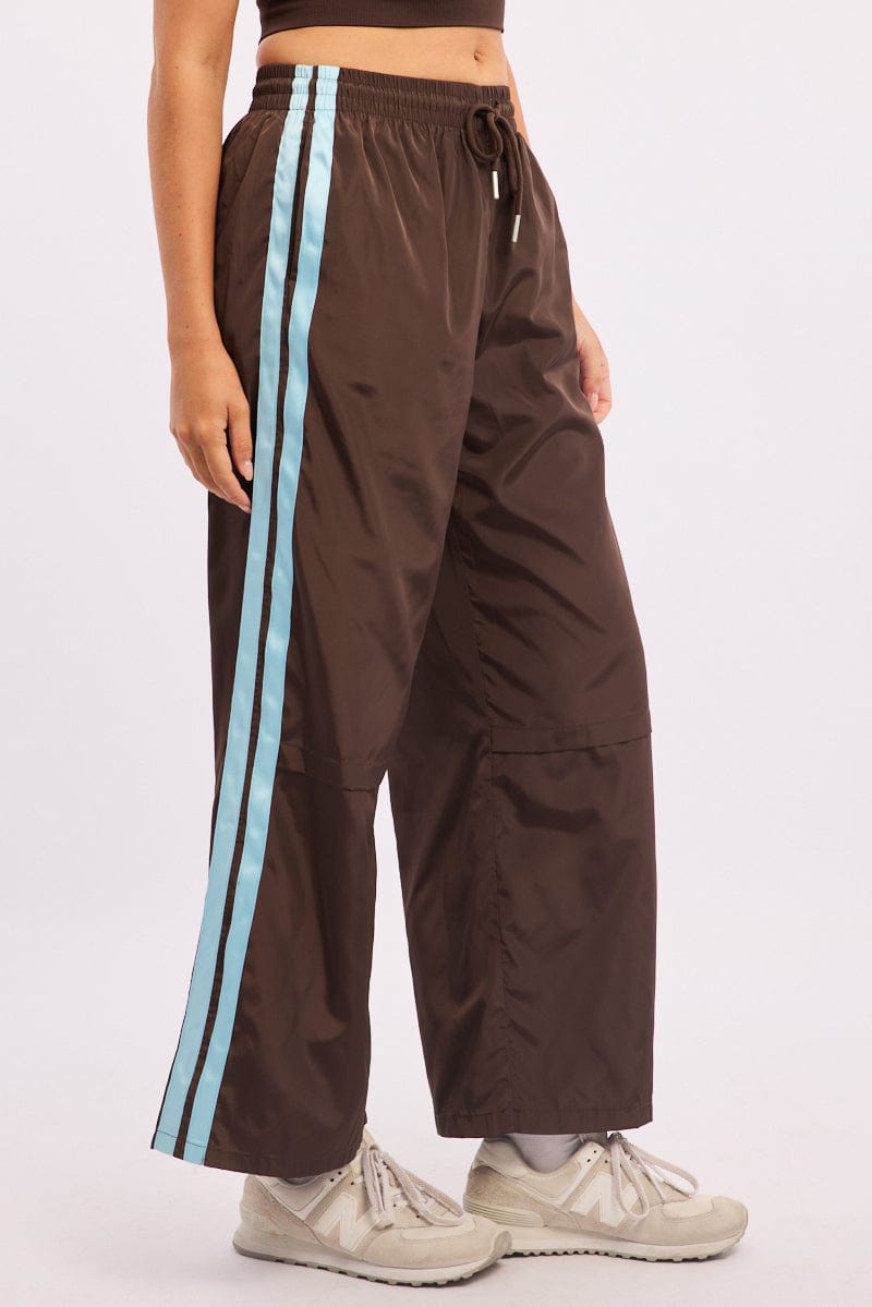 Brown Track Pants Side Stripe