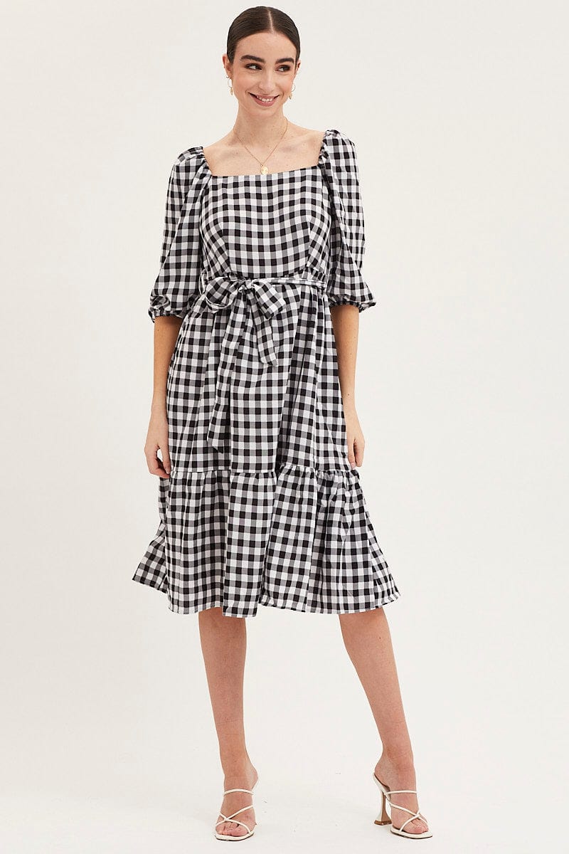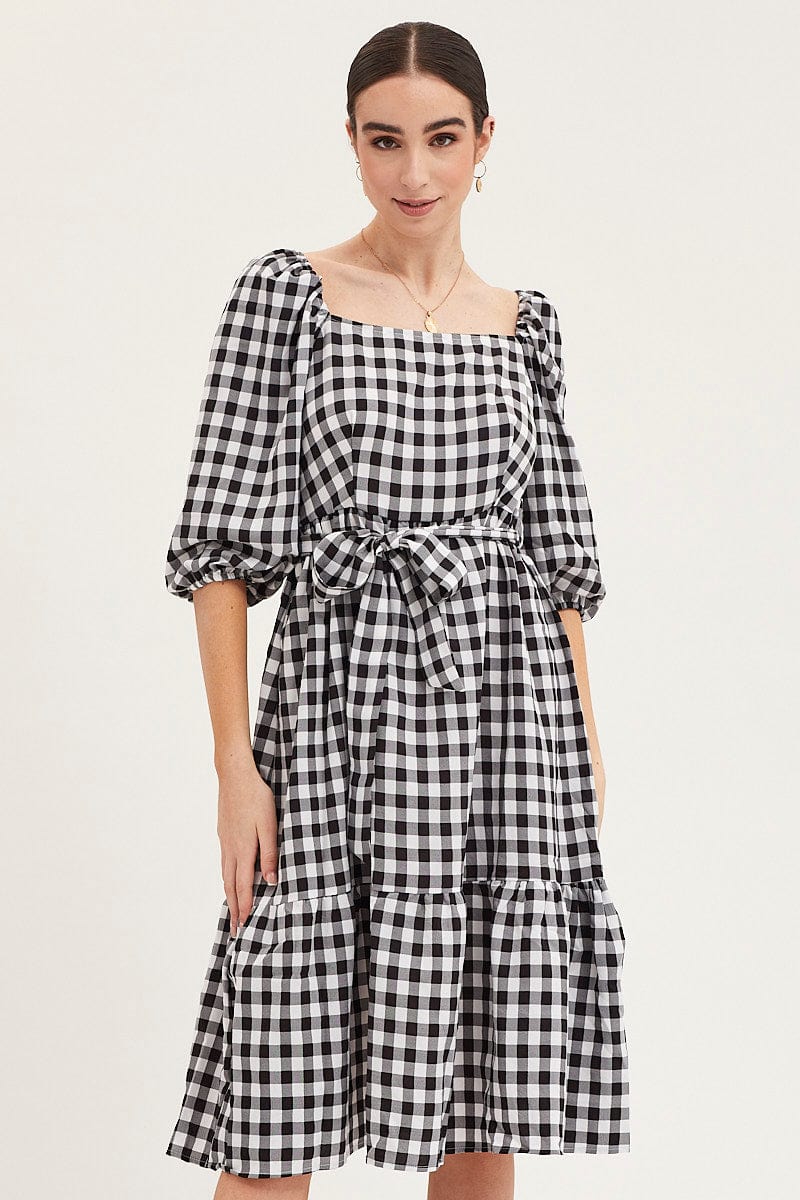 Check Dress Puff Sleeve Maxi