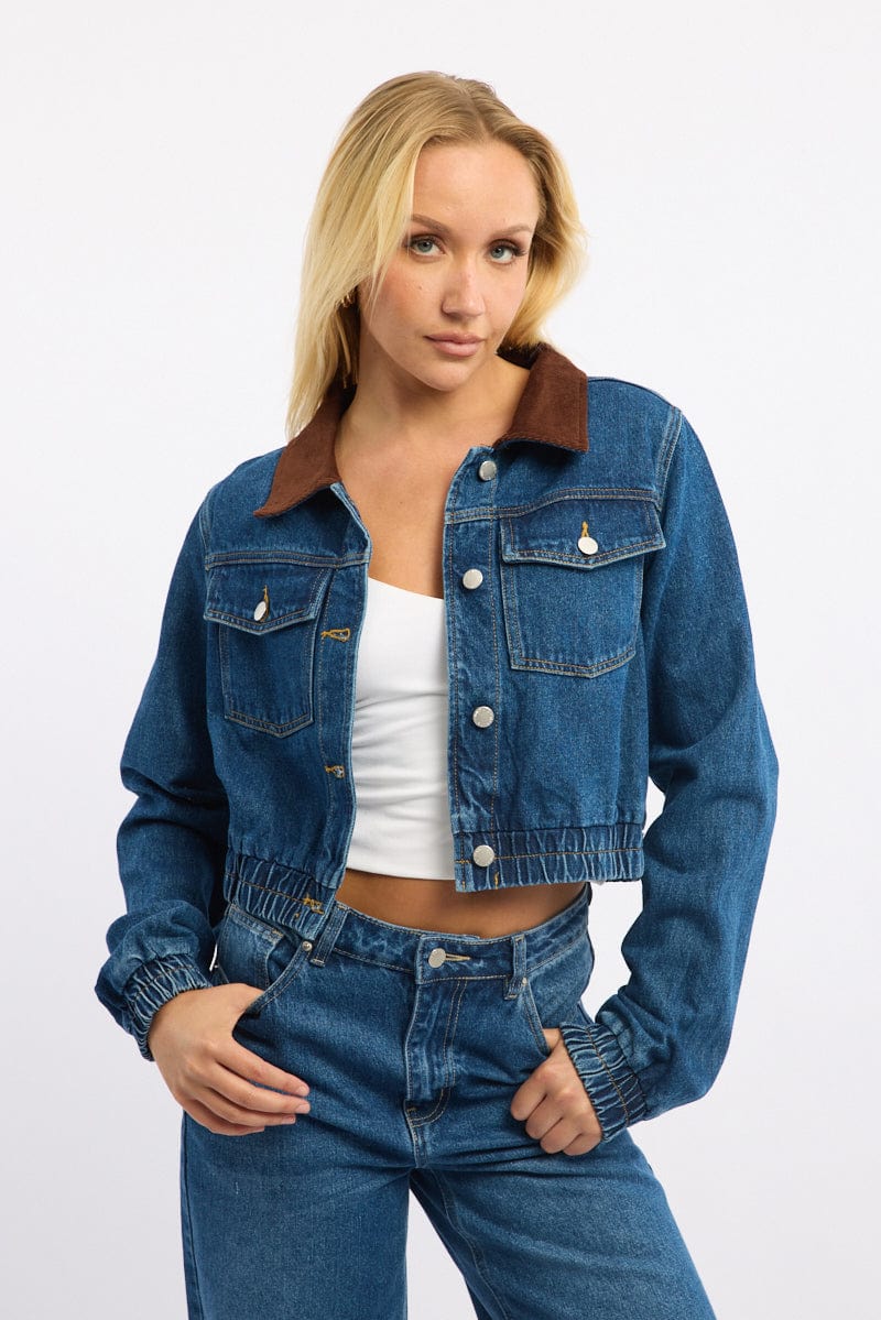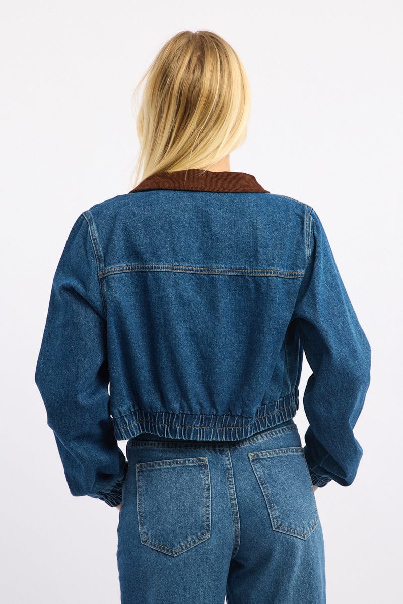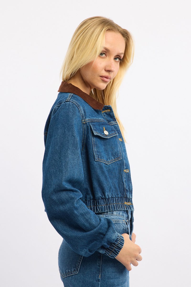 - Contrast Collar, Button Up Closure, Chest Pockets, Cinched Hem