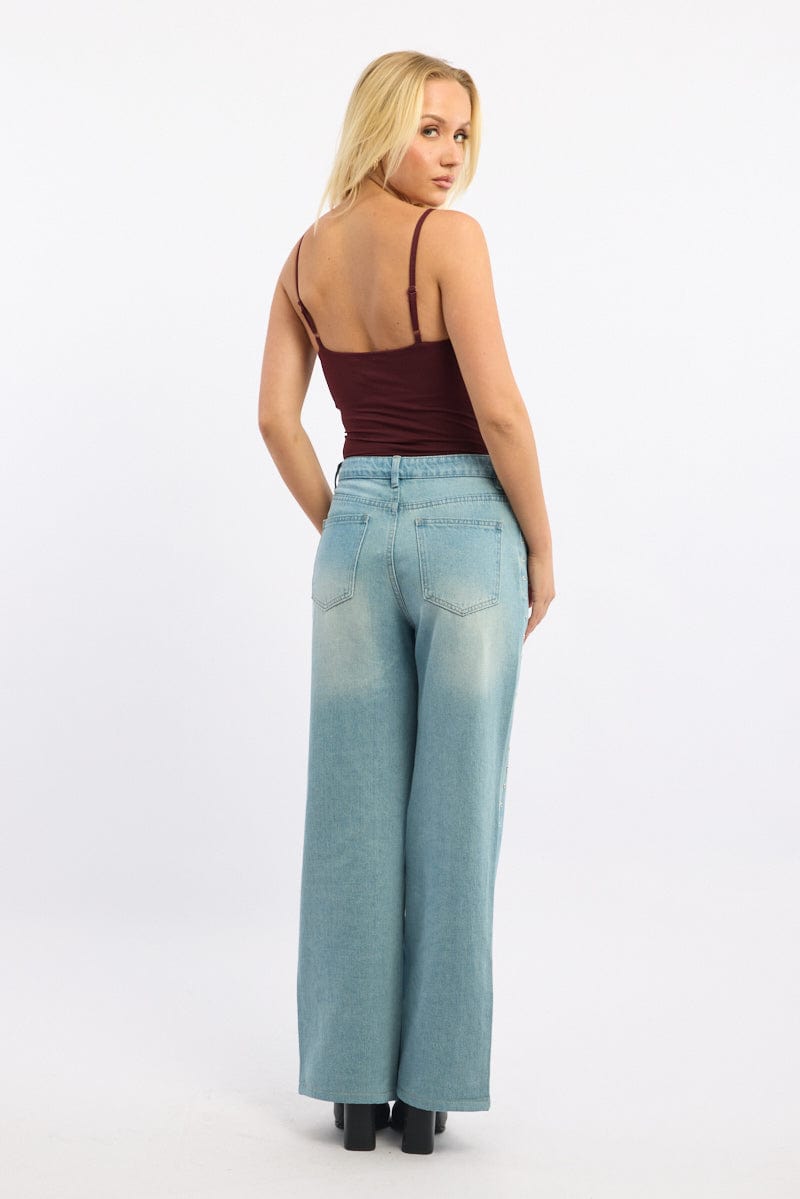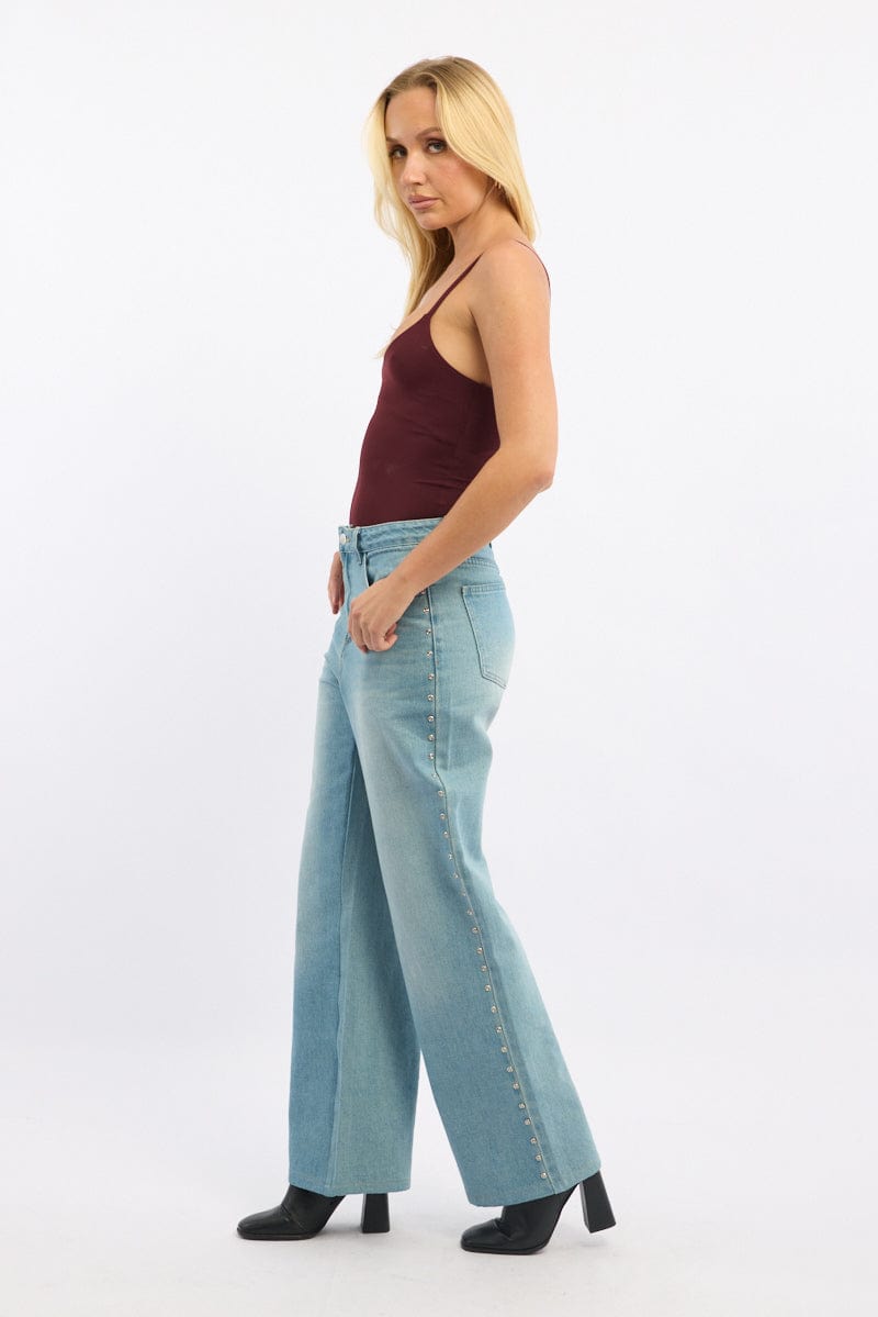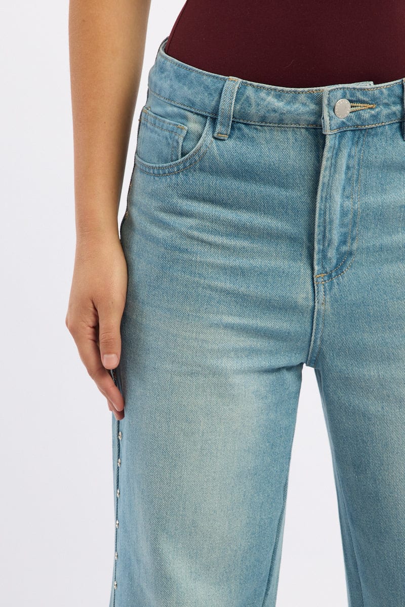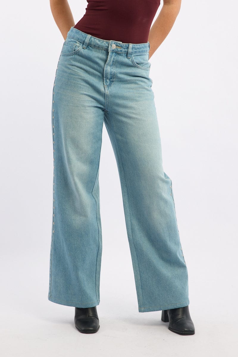 - Belt Loops, Pockets, Side Grommet Details, Tack Button Closure