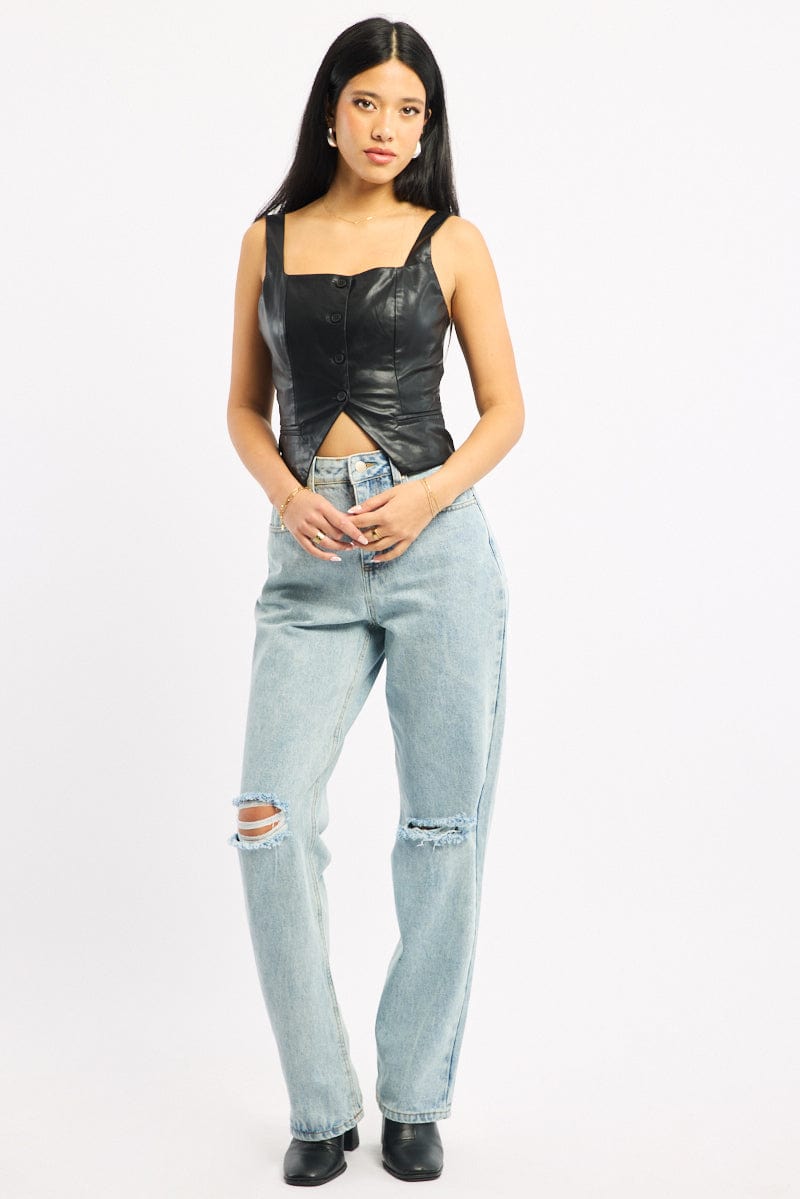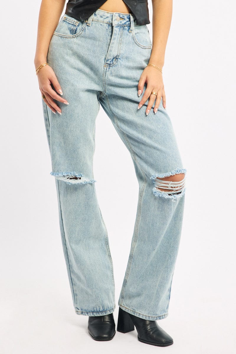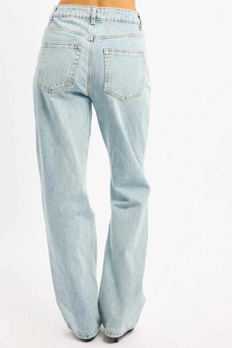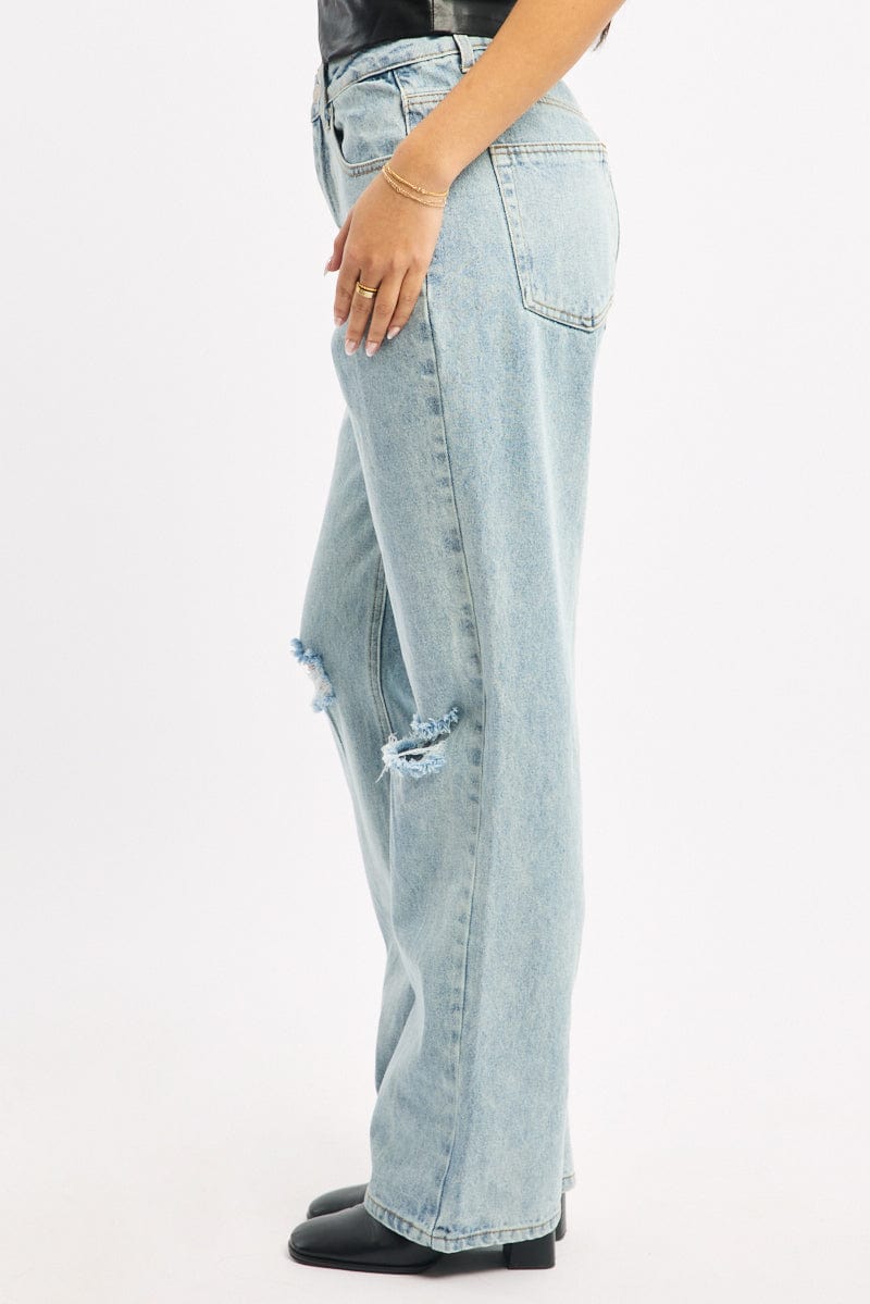 Denim Wide Leg Jeans Mid Rise