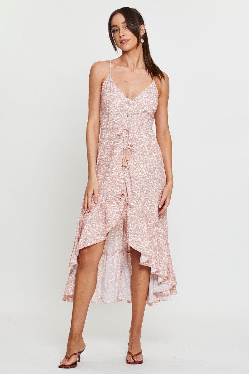 Geo Print Dress Adjustable Straps Midi