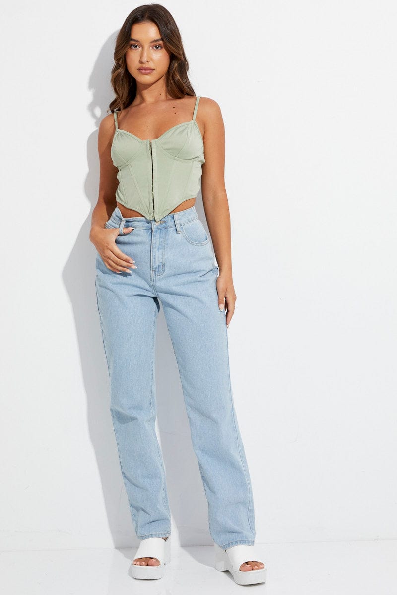 Green Corset Singlet Sleeveless Sweetheart Neck