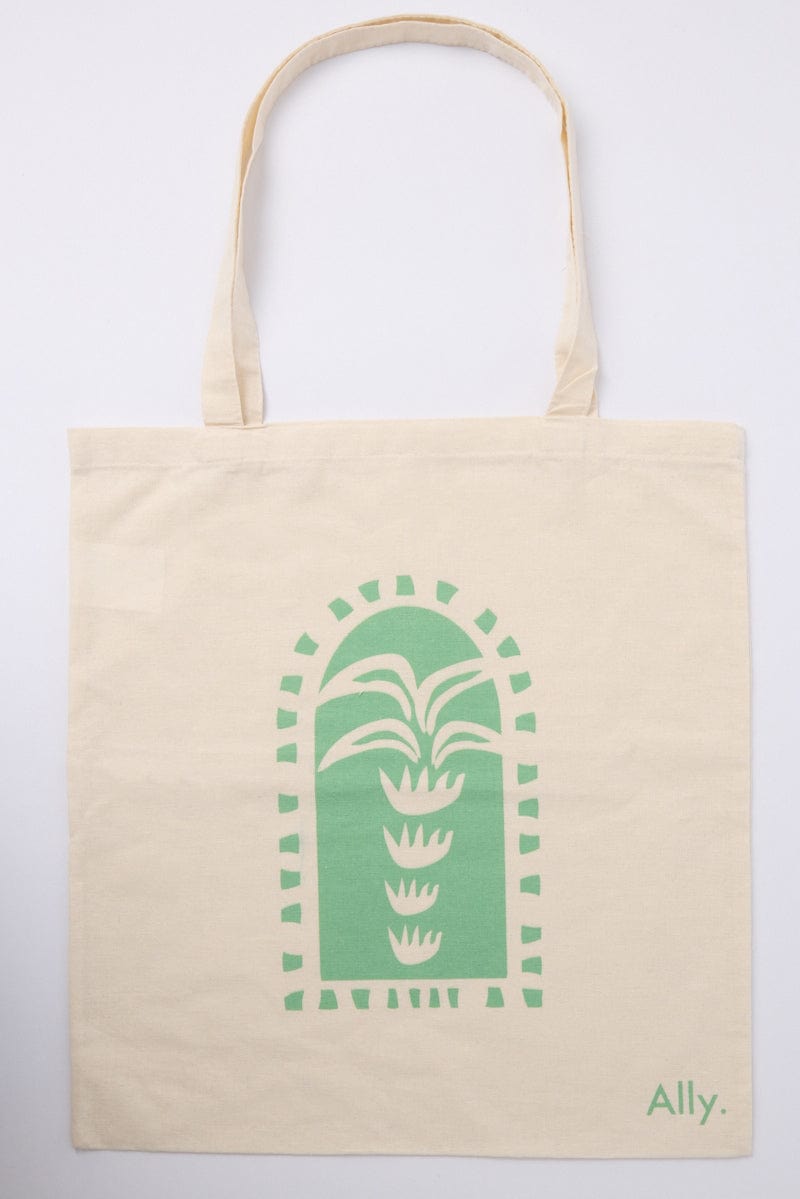 Green Print Tote Bag Printed Balmy Palm