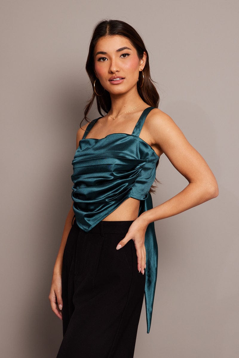 - Satin, Ruched, Bandana Hem, Tie-Up Back
