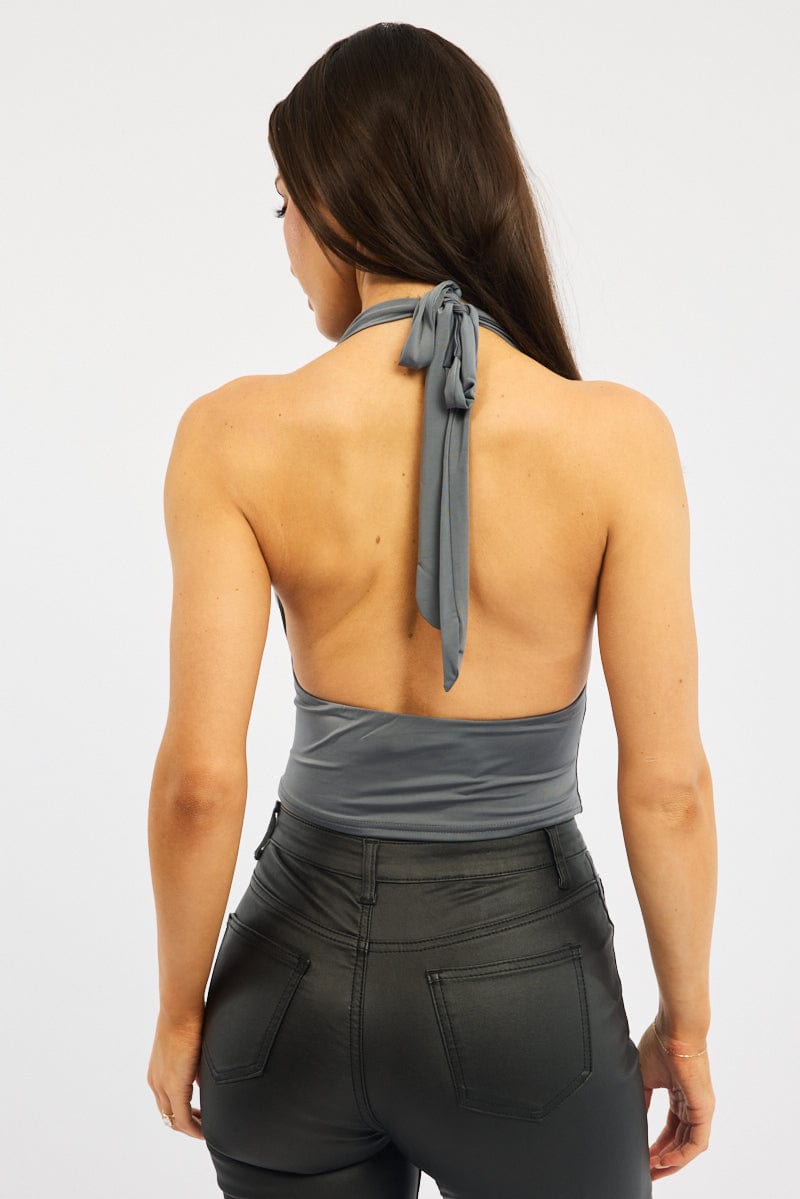 Grey Cowl Neck Top Backless