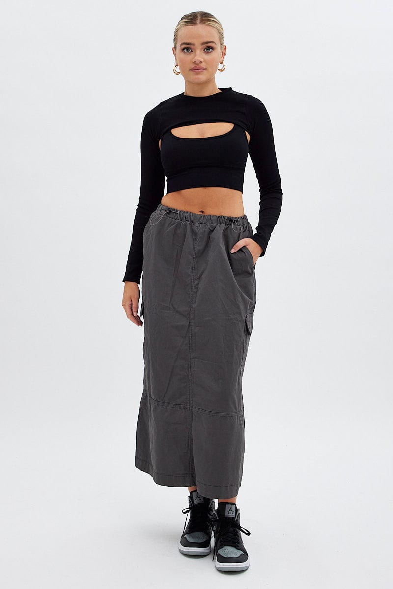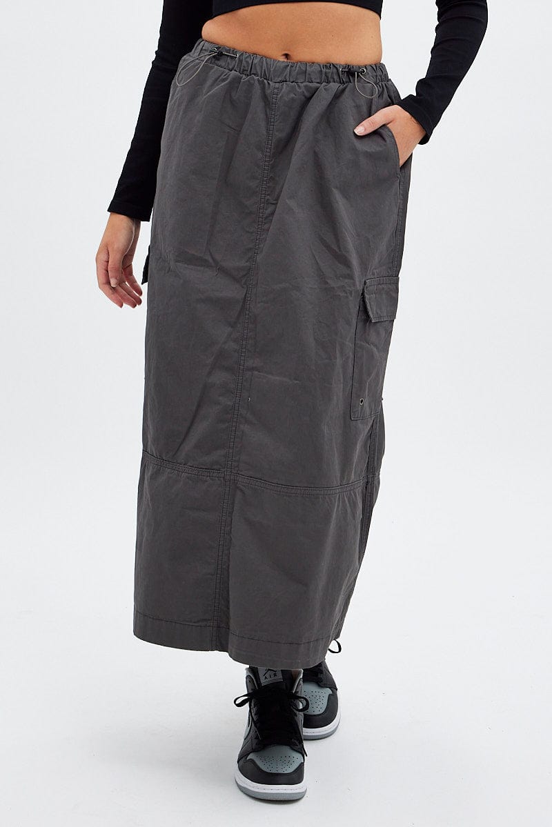 Grey Maxi Skirt Low Rise Cargo Parachute