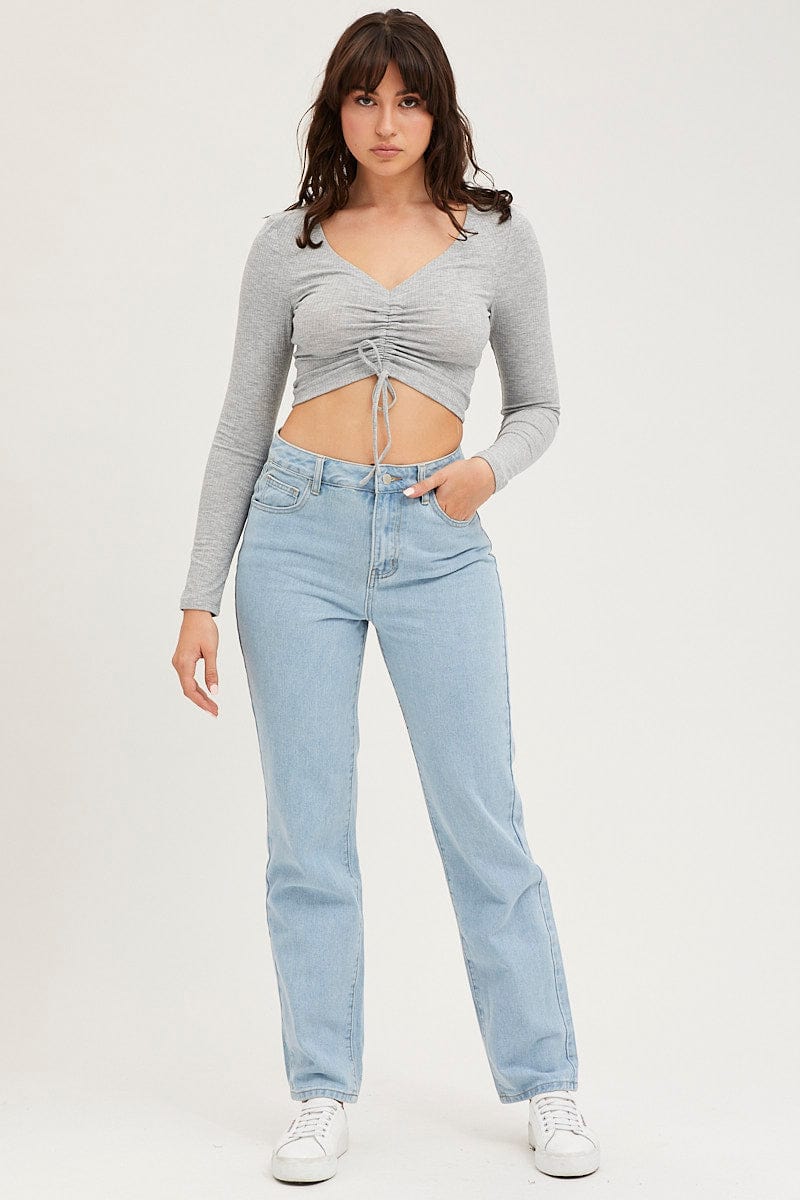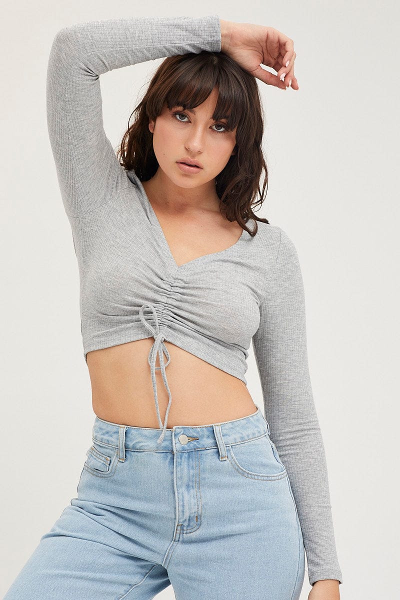 Grey Rib Crop Top Long Sleeve
