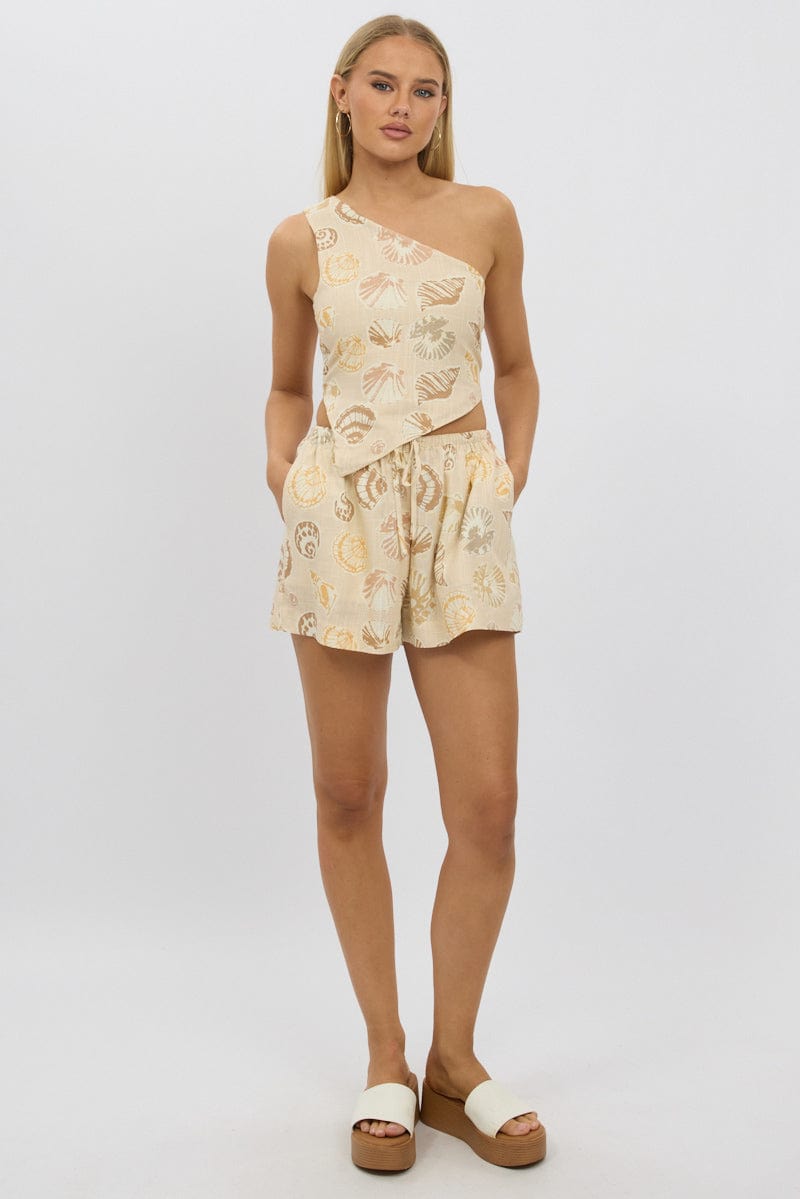 Multi Abstract Scarf Top One Shoulder Linen Blend