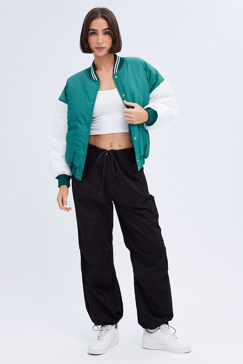 - Puffer, Embroidered Print, Snap Button Front