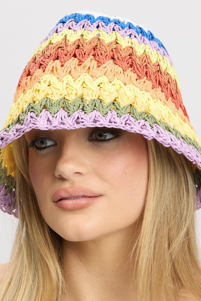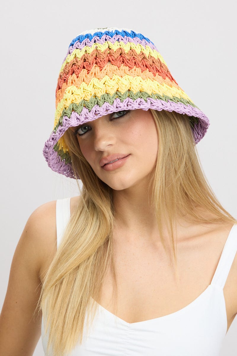 - Straw, Bucket Hat Shape, Multi-Coloured