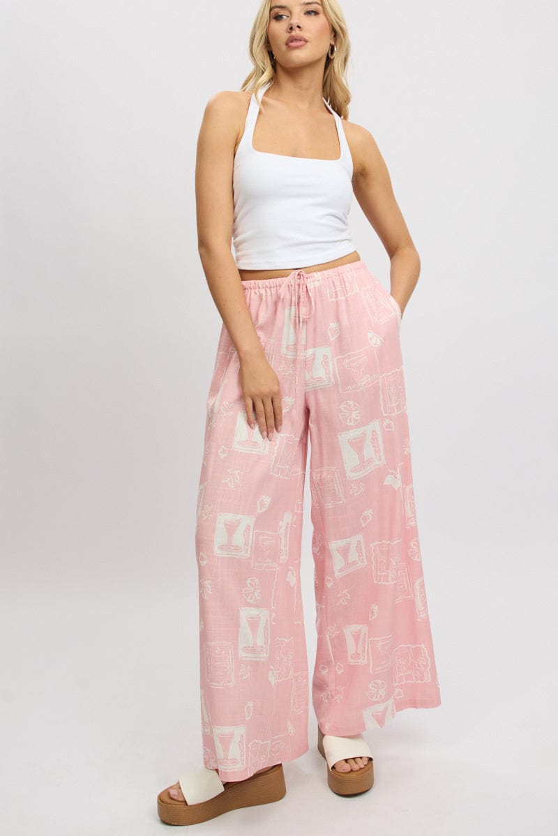 - Elasticised Drawstring Waist, Side Pockets, Wide Leg