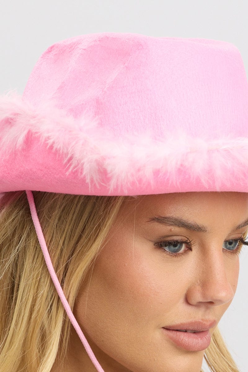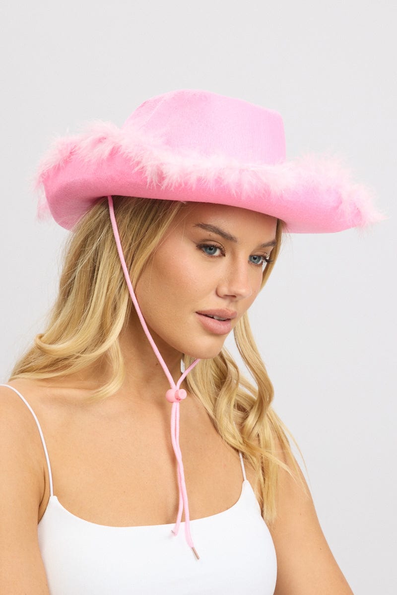 - Drawstring Chin Strap, Faux Feather Trim, Structured Brim