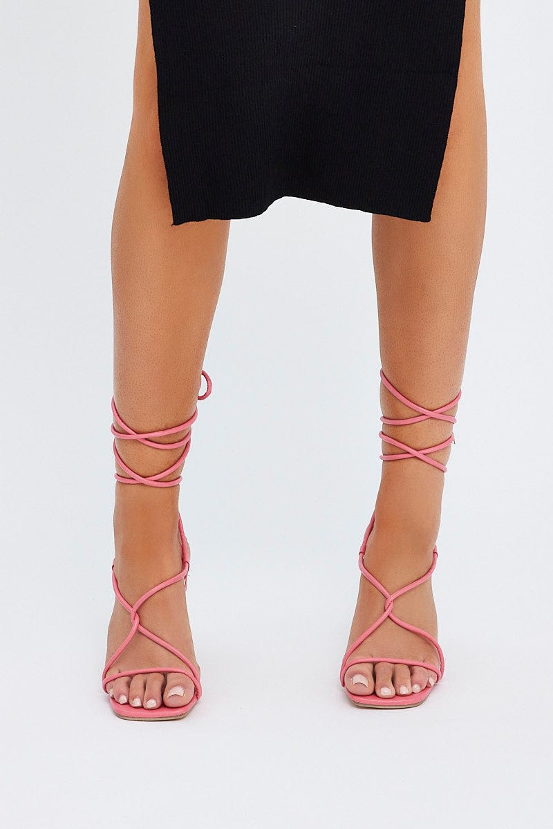 Pink Strappy Tie Leg Heeled Sandals