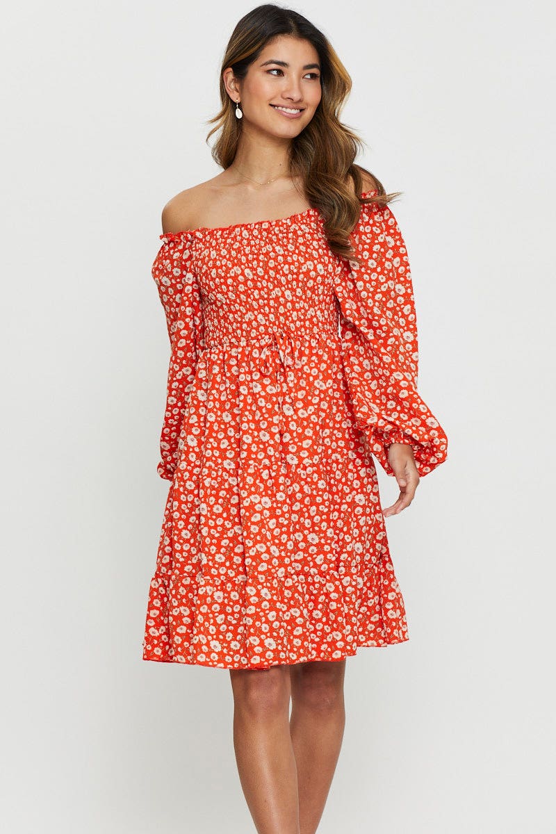 - Shirred Bust, Tie Detail, Floral Print, Elasticised Wrists