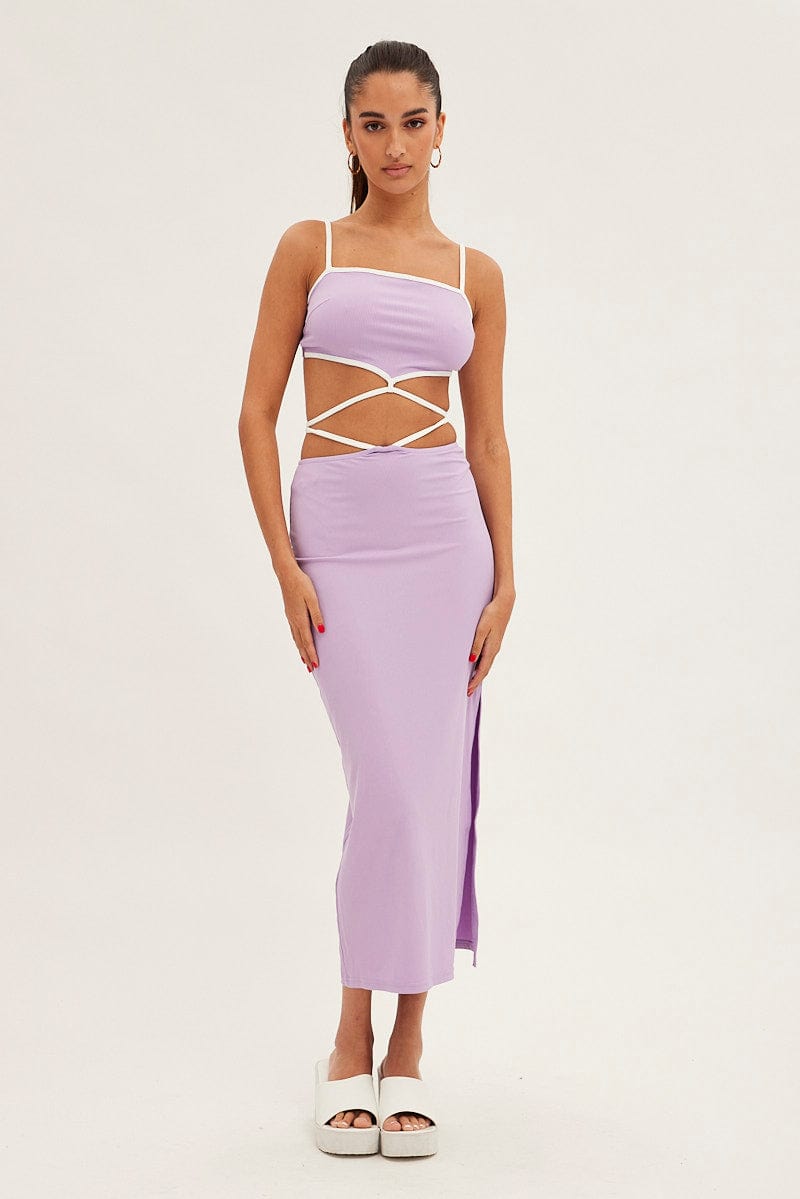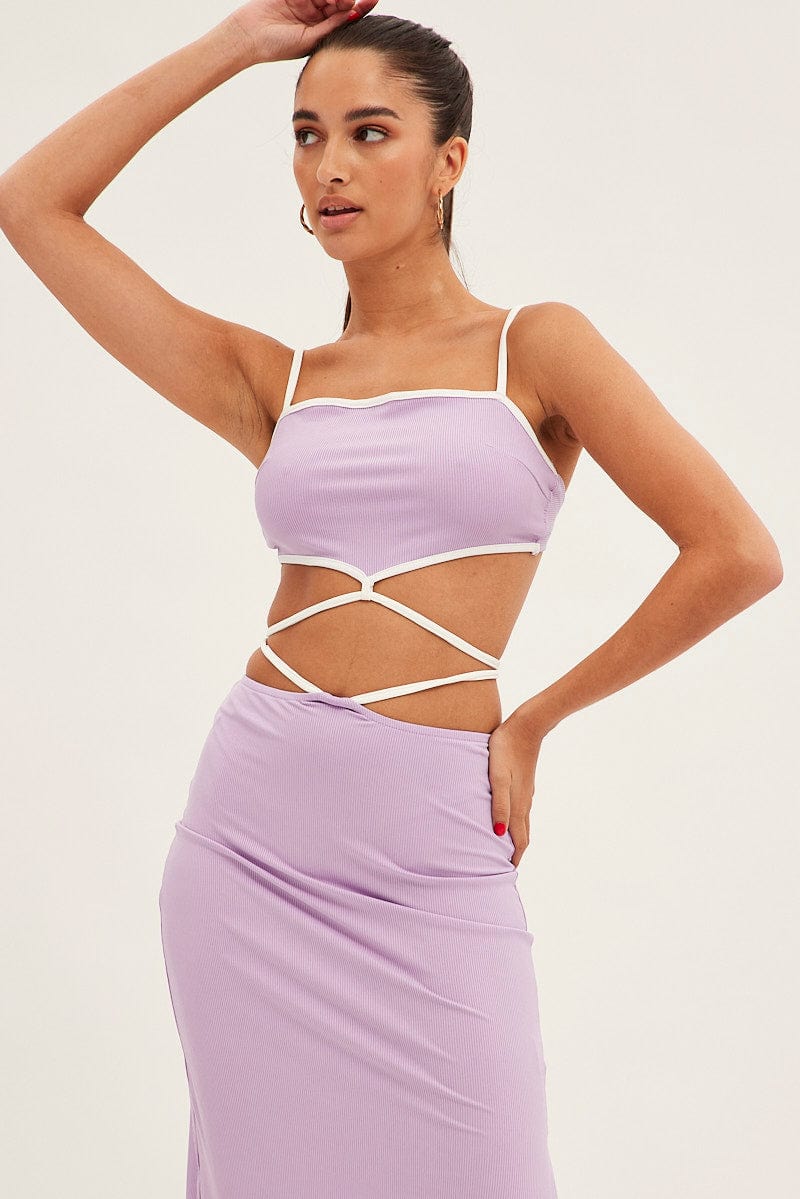Purple Tie Top Sleeveless Crop Contrast Ribbed