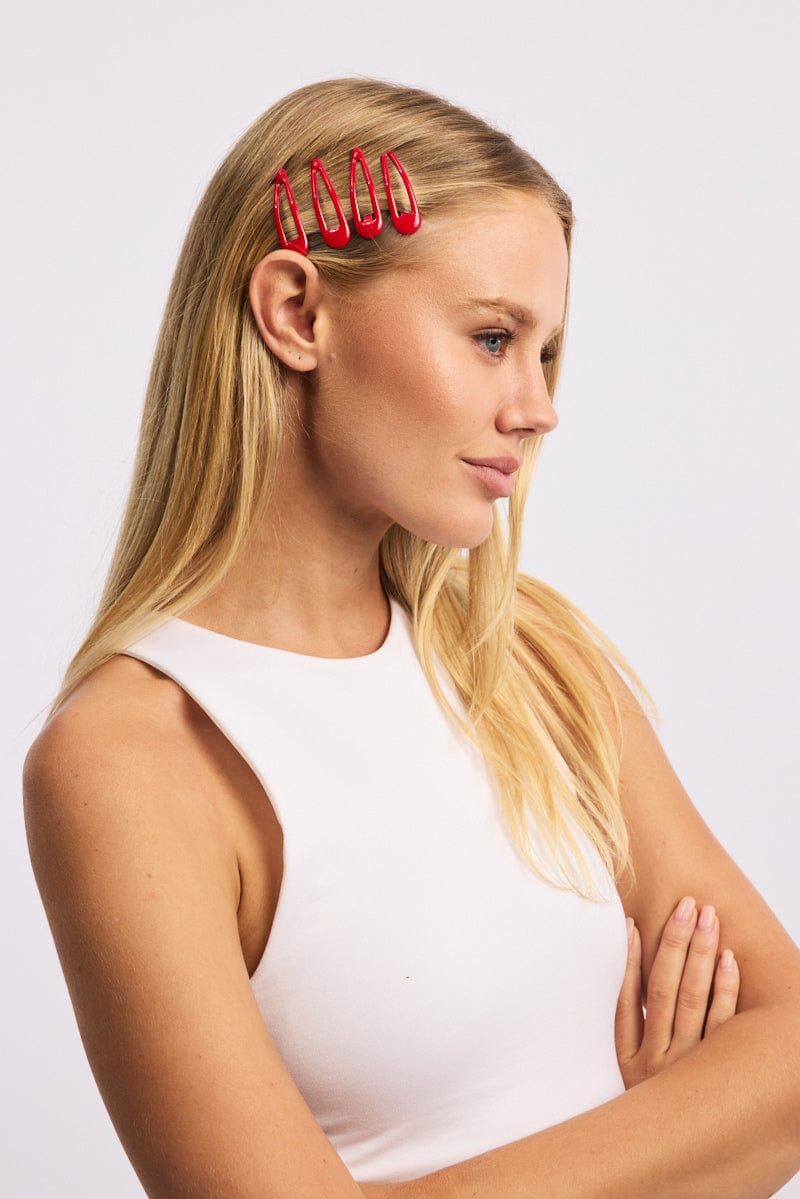 Red 4 Pack Hair Clips