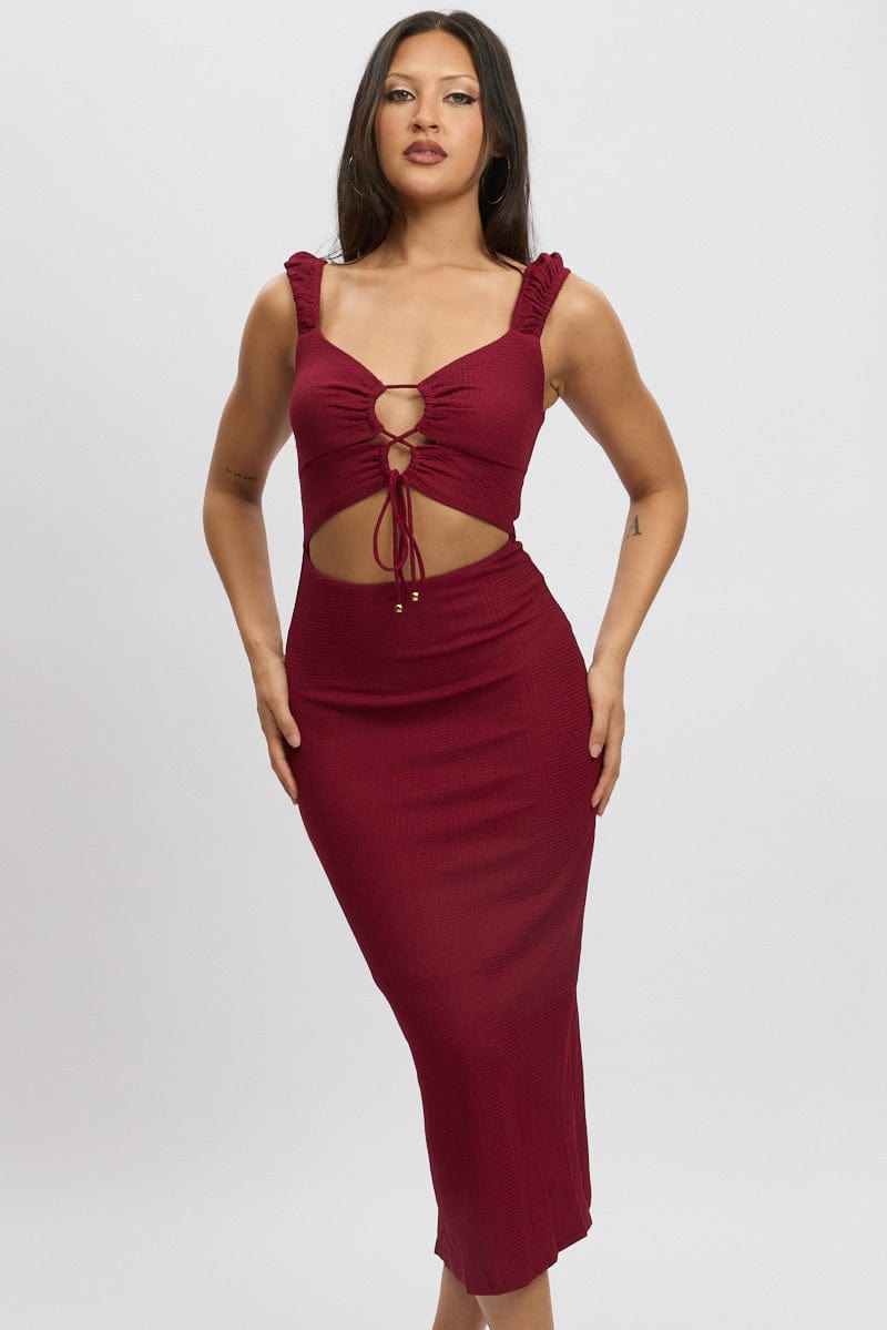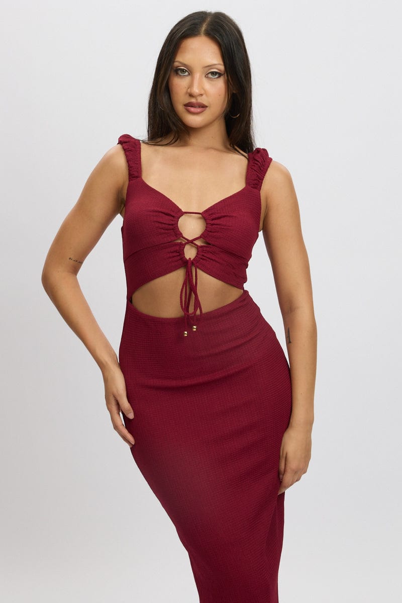 - Front Cut Out, Puffed Straps, Textured, Beaded Tie-Up