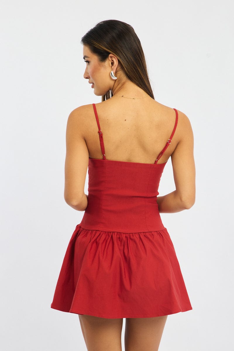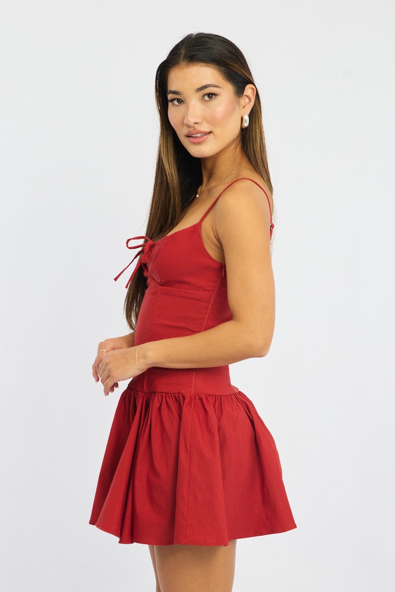 - Tie Detail, Keyhole, Drop Waist, Side Zipper
