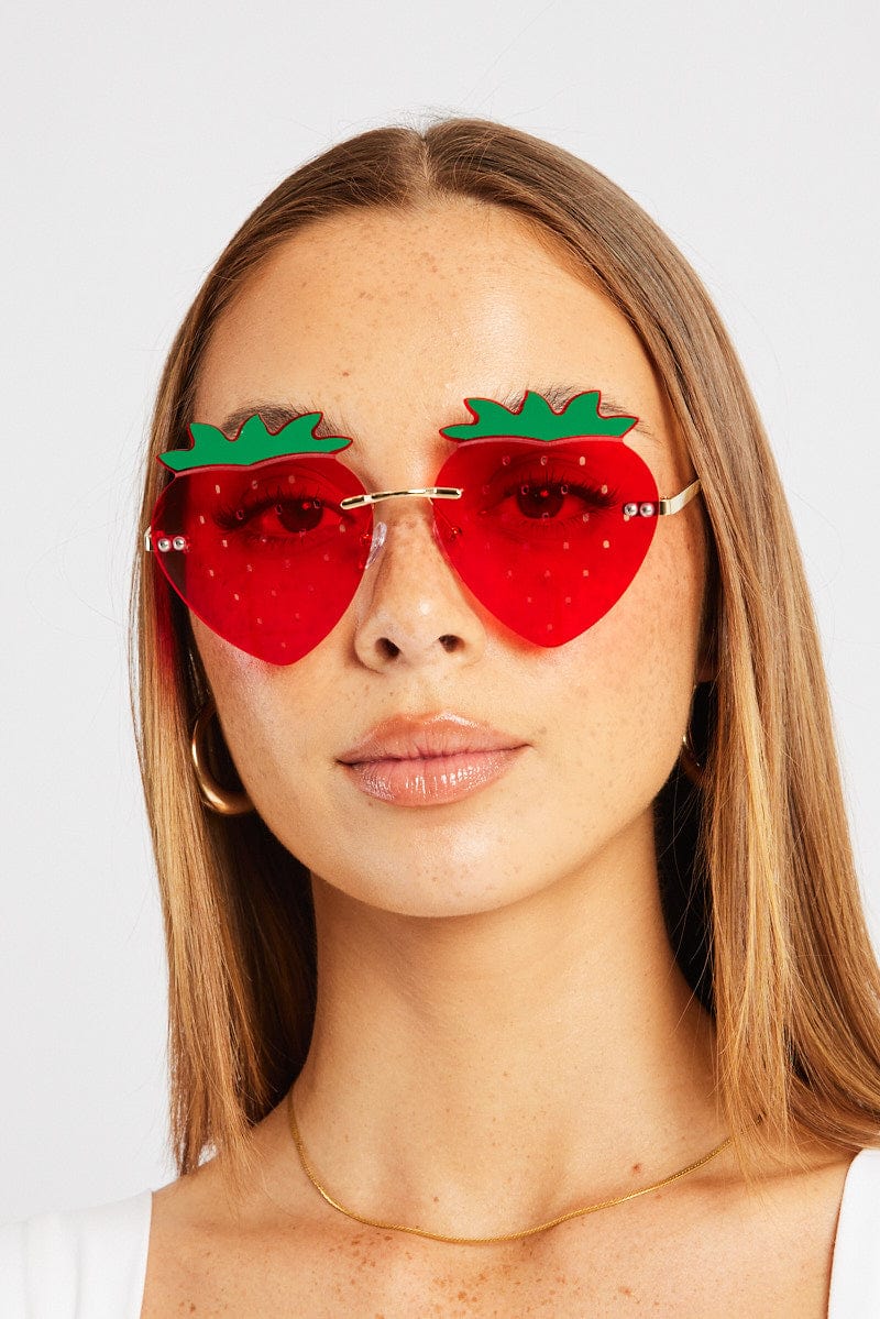 - Strawberry Shape, Red Tinted Lens, Gold-Toned