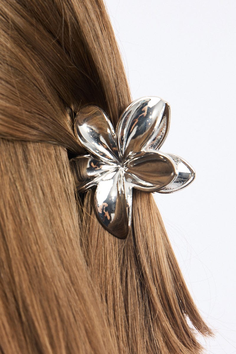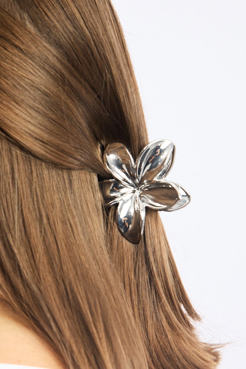 Silver Hibiscus Flower Claw Clip