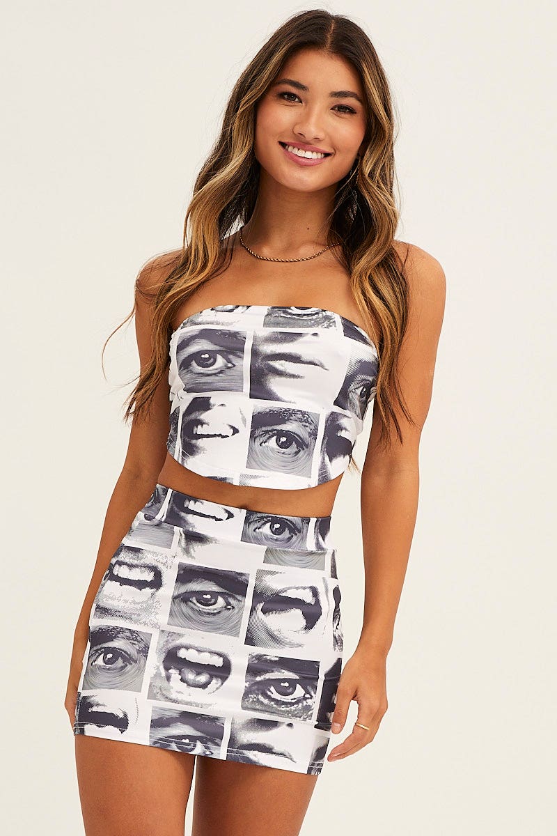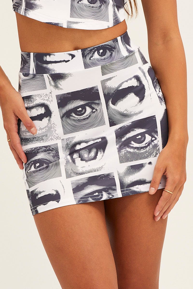White Abstract Mini Skirt