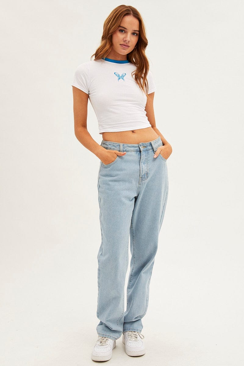 White Baby T-Shirt Butterfly Short Sleeve Crop