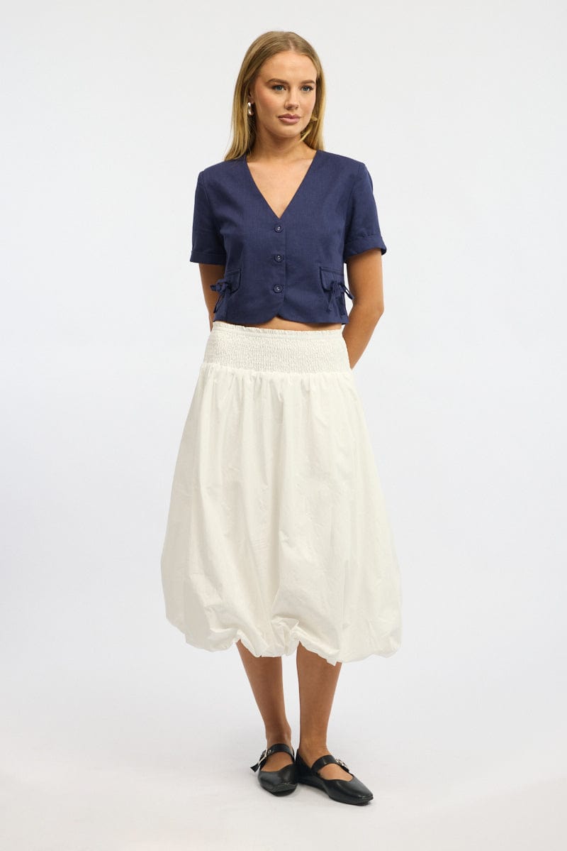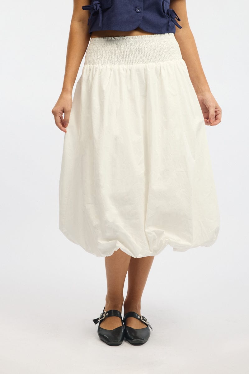 White Balloon Skirt Shirred Waist Maxi