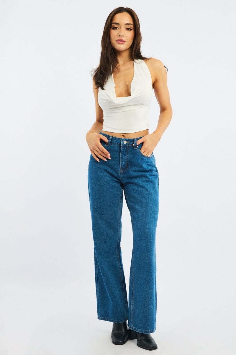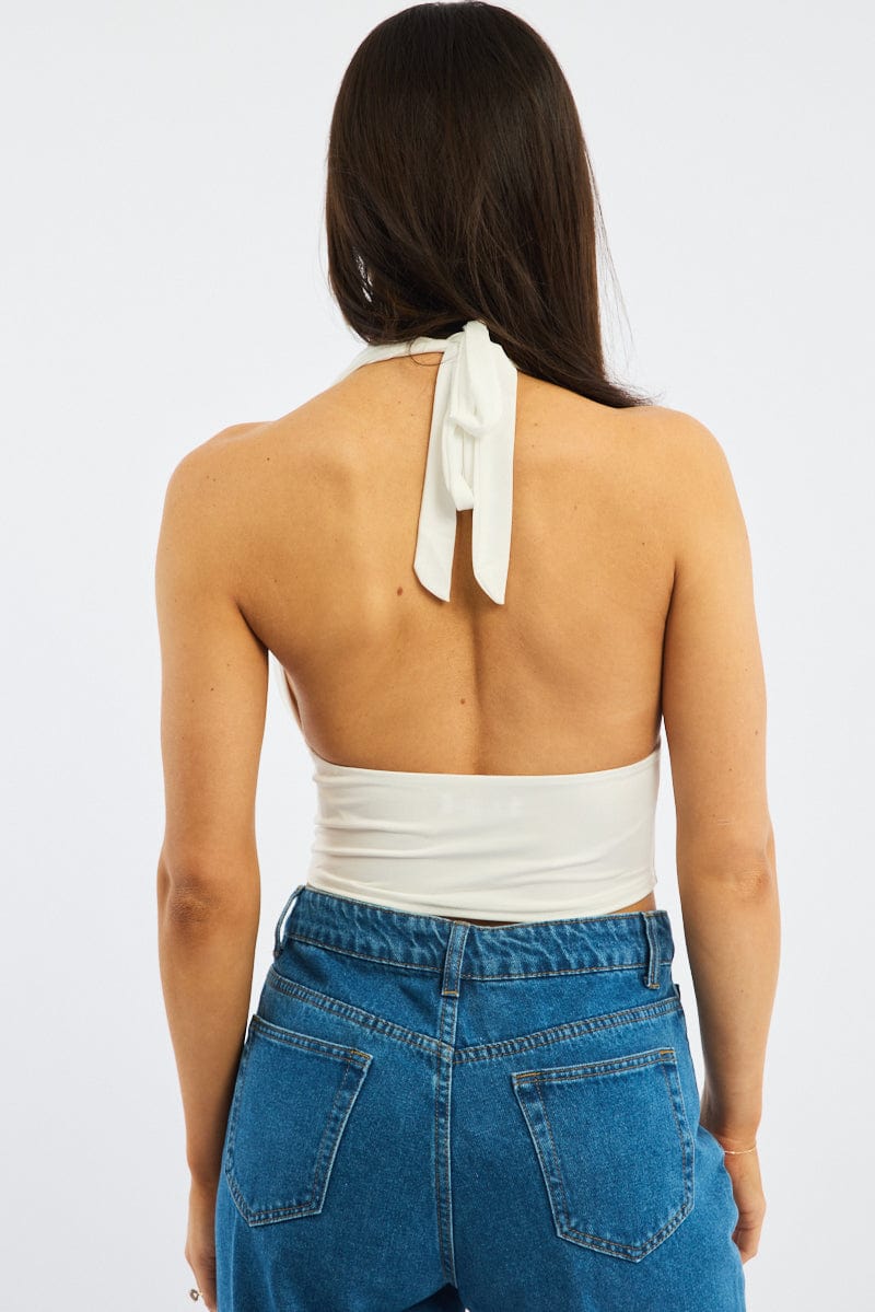 White Cowl Neck Top Backless
