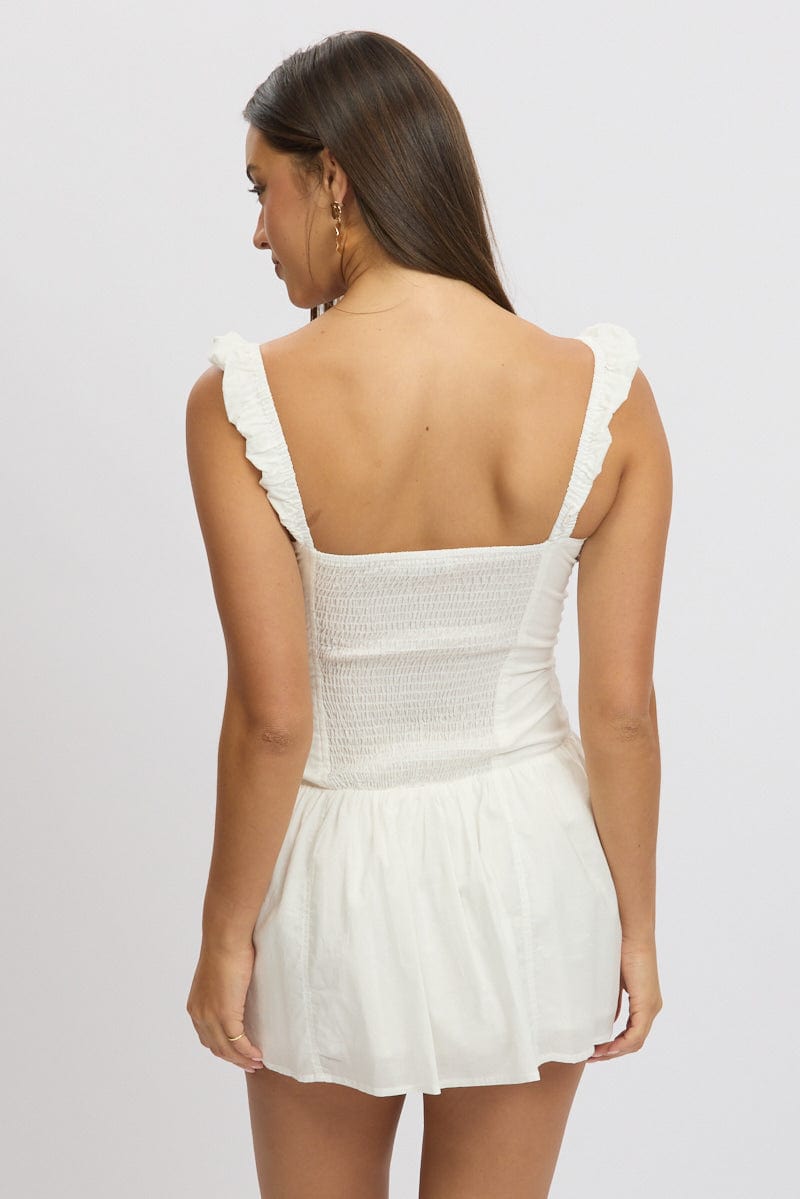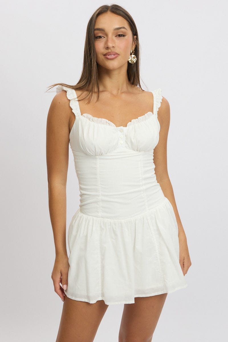 White Fit And Flare Dress Drop Waist Mini Poplin
