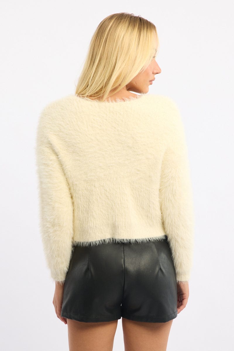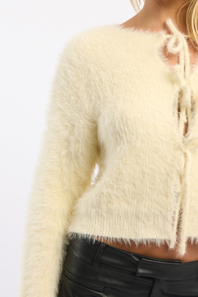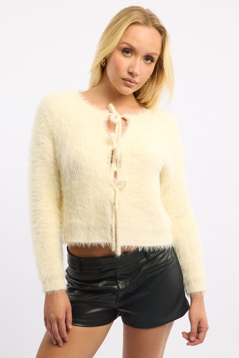 White Fluffy Cardigan Long Sleeve Tie Up