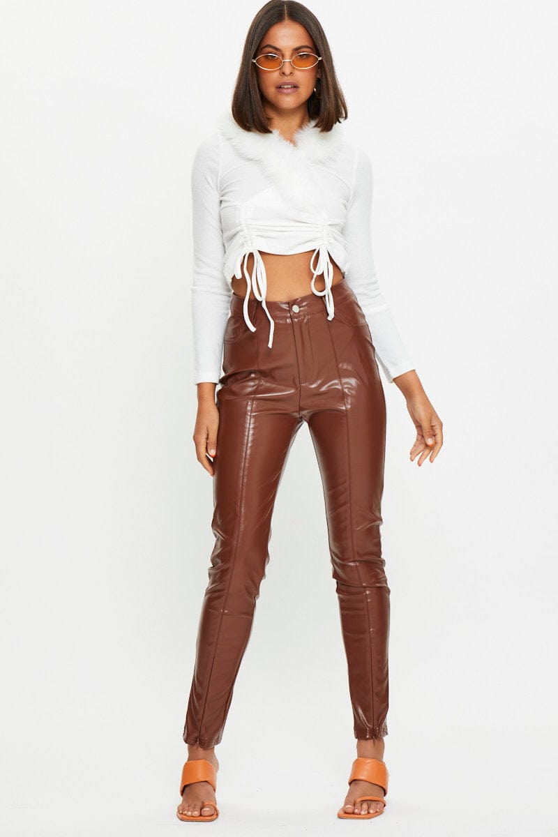 - Faux Fur, Drawstring Front, Long Sleeves, Cropped Length