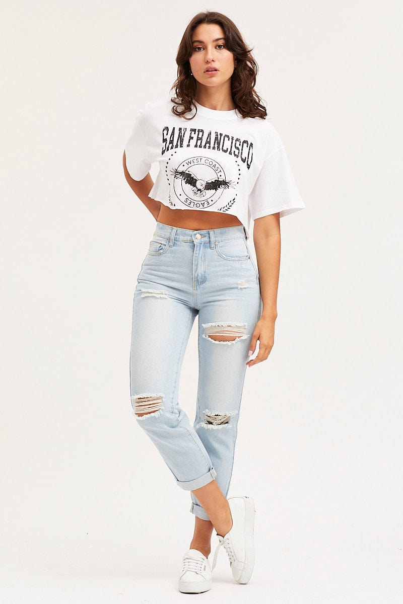White Jersey T-Shirt Short Sleeve Crop