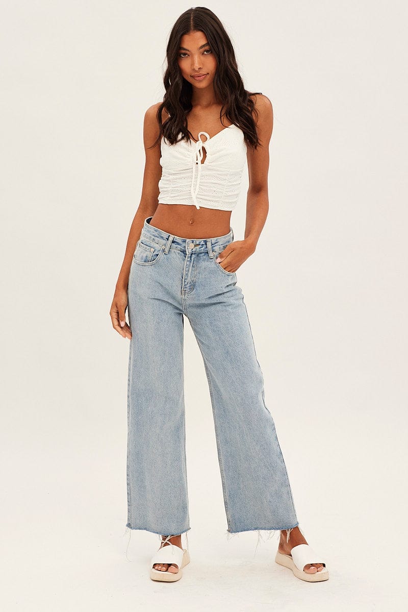 White Lace Keyhole Rushed Cropped Cami