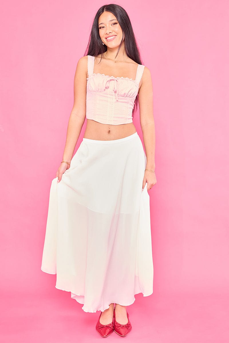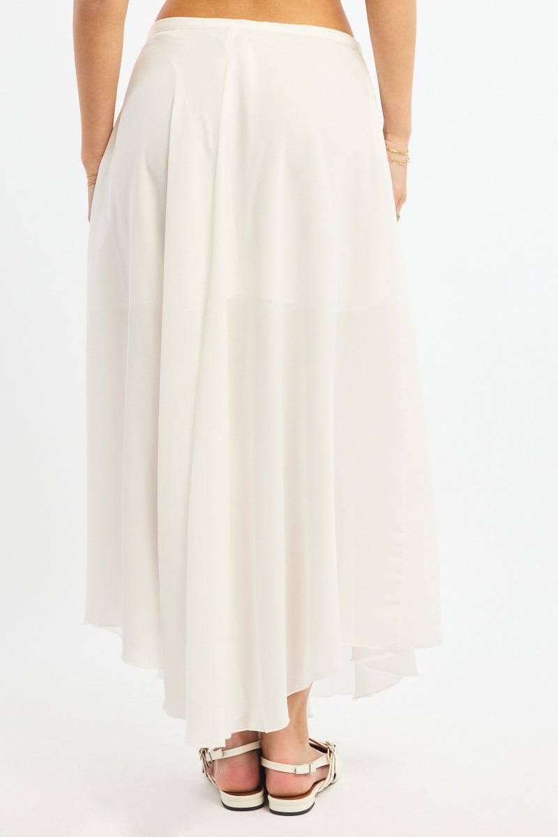 White Maxi Skirt Flowy High Waisted Poly Chiffon
