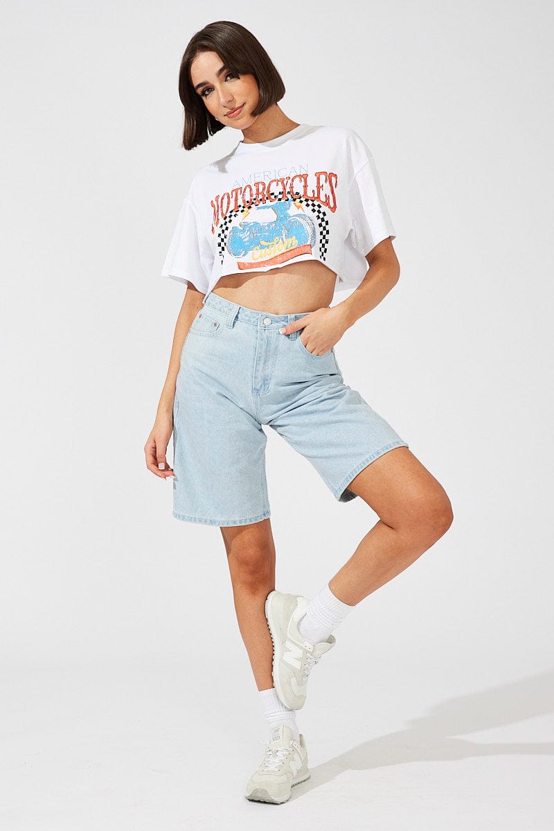 White Motocross Tee Biker Racing Graphic Crop T-Shirt
