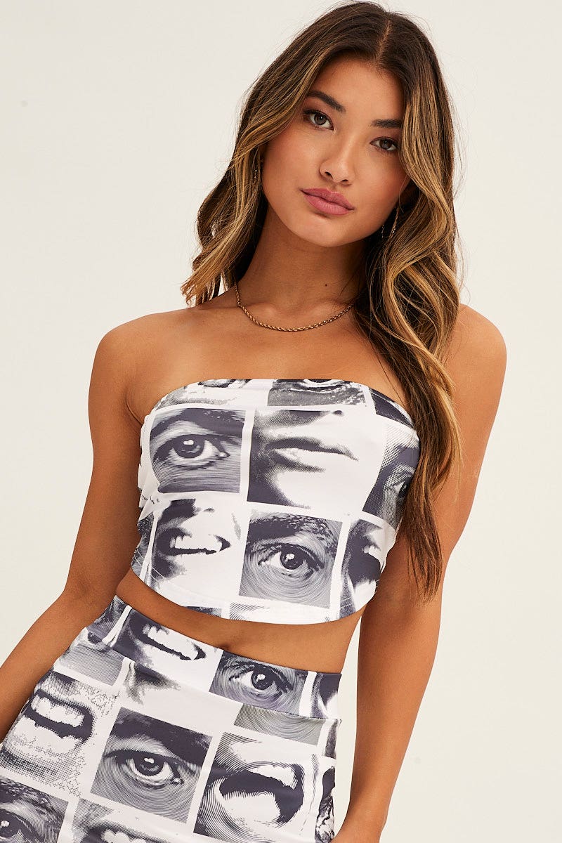 White Print Crop Boobtube