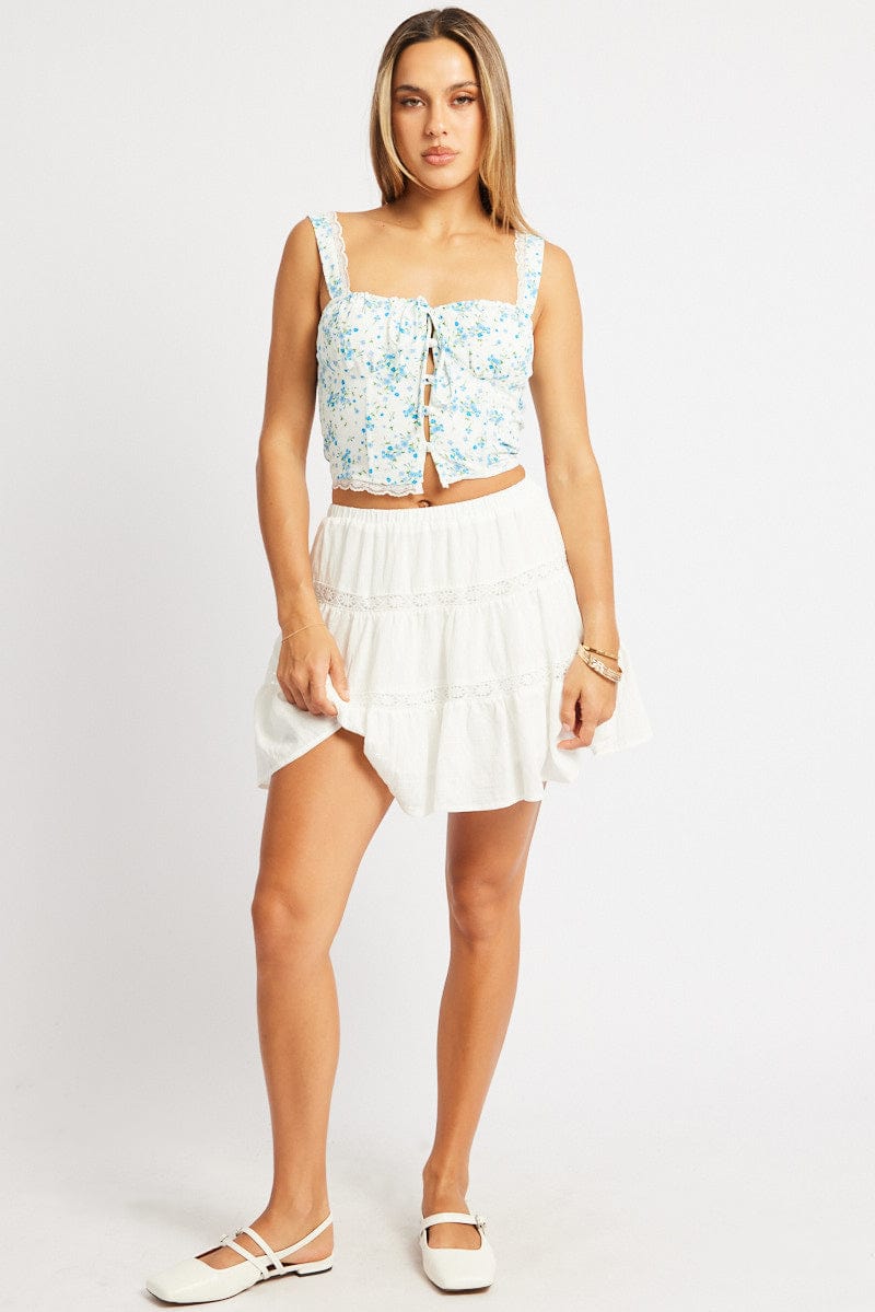 White Skater Skirt Tiered High Rise Mini Lace Insert